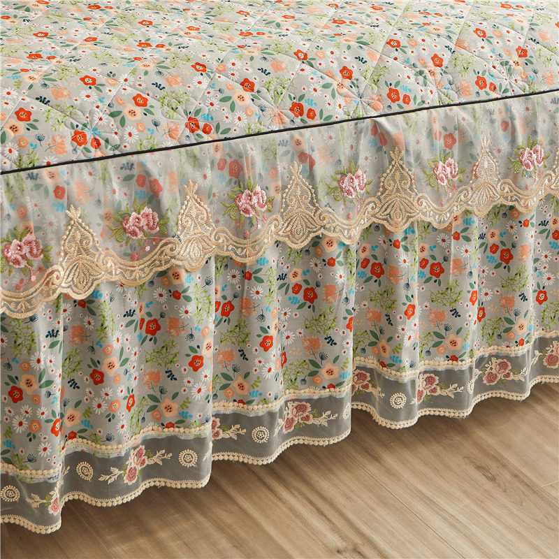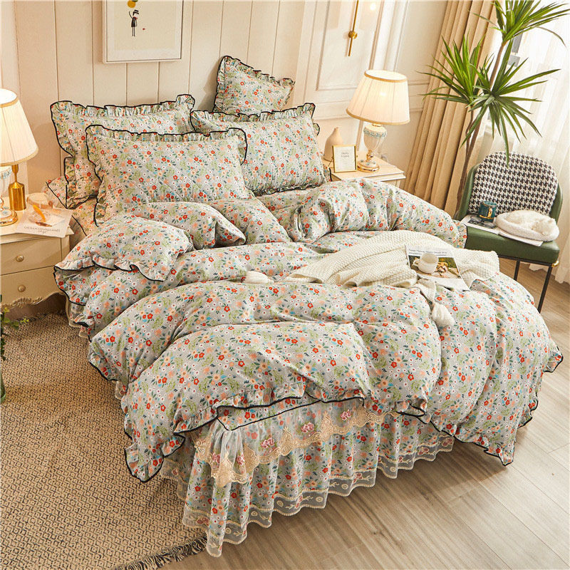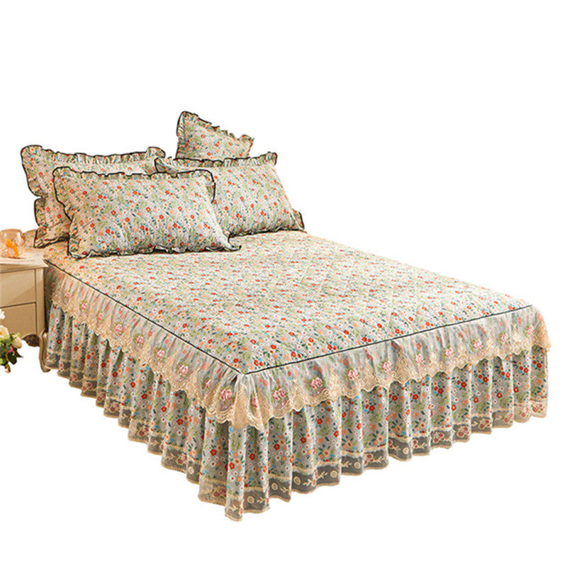 纯棉单件床裙式床罩全棉三件套蕾丝床单防滑床套四件套简约公主风