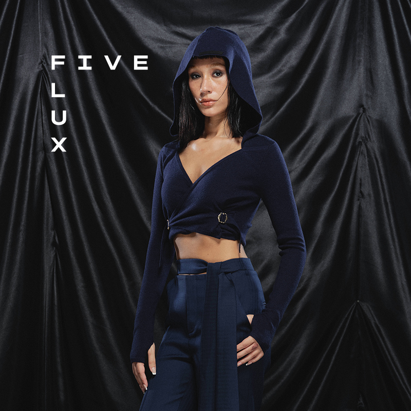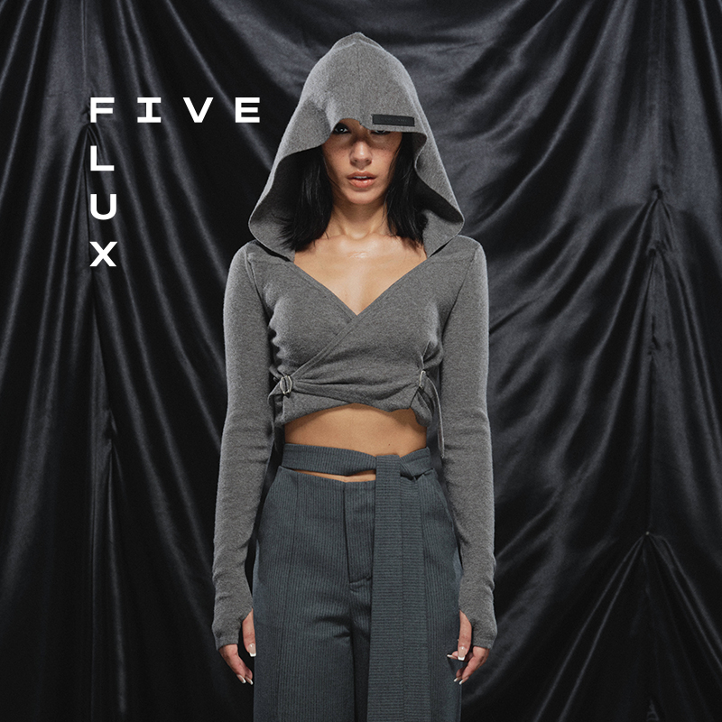 FIVE FLUX 失语吉普赛人系列秋冬连帽薄针织衫套头V领长袖上衣女