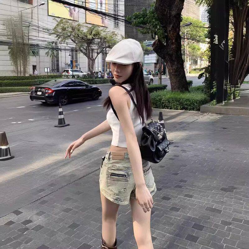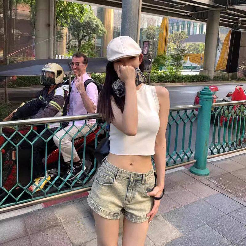 高腰女夏牛仔短裤显瘦辣妹百搭新款2026做旧子直筒裤水洗热裤复古