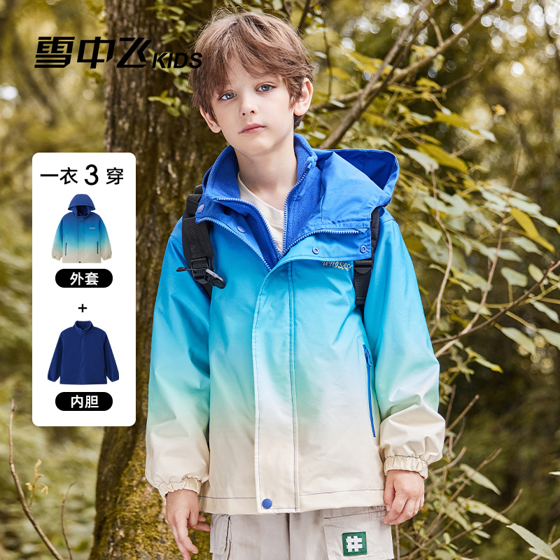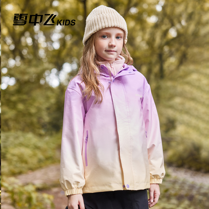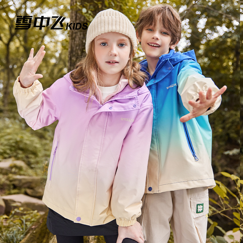 雪中飞童装男童外套2025秋冬新款女童时尚渐变色两件套户外冲锋衣