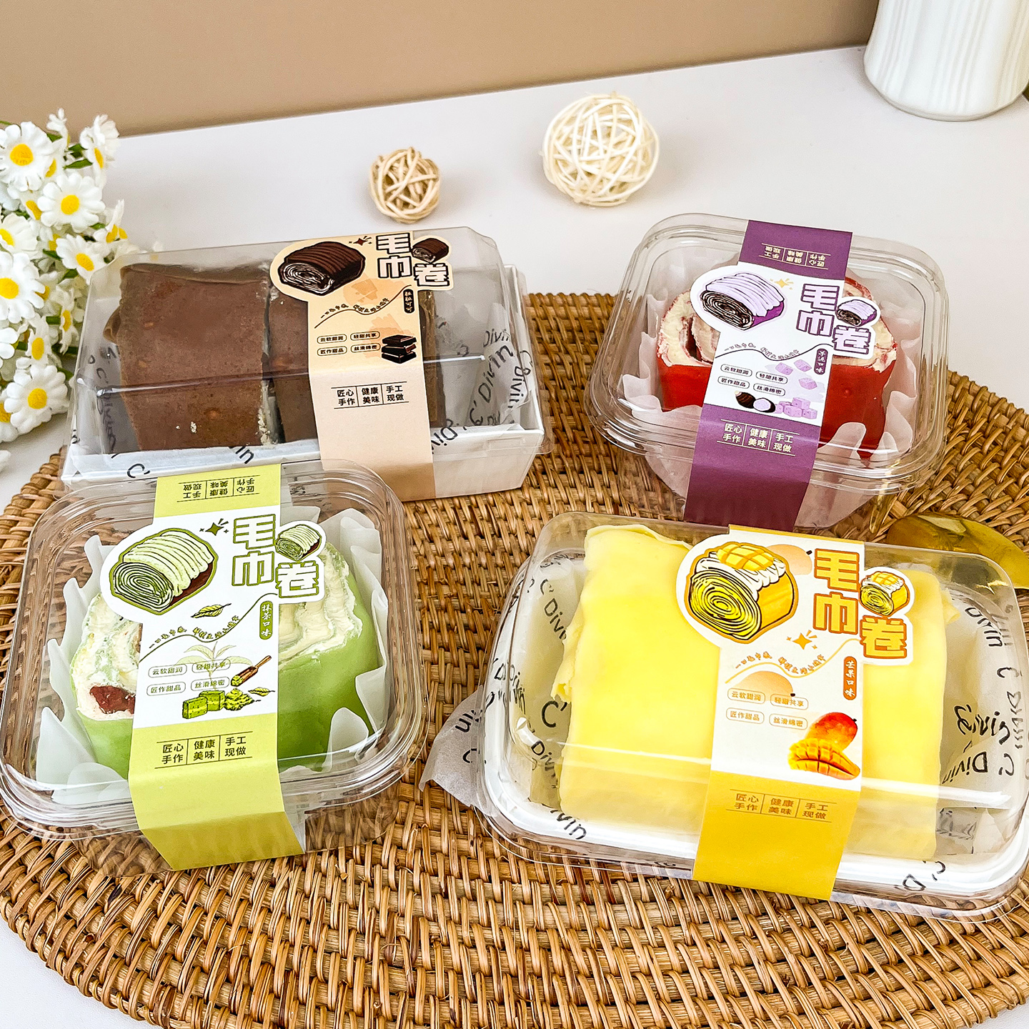 瑞文烘焙包装迷你毛巾卷包装盒瑞士卷脏脏蛋糕卷透明分装打包盒子