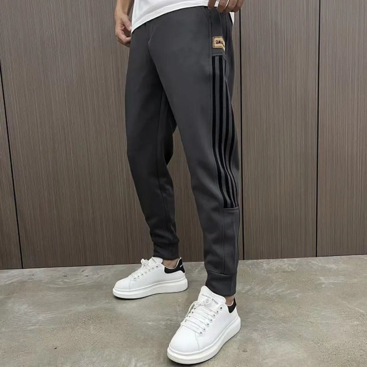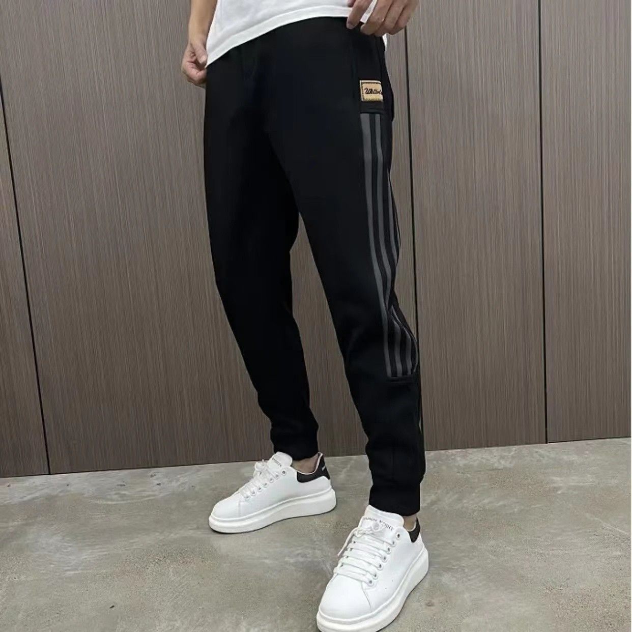 男士潮牌束脚休闲裤2023秋季潮流三道杠修身显瘦小脚运动卫裤子男