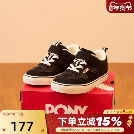 Pony波尼童鞋年春季新款男童板鞋黑色运动休闲鞋251K1SK01BK