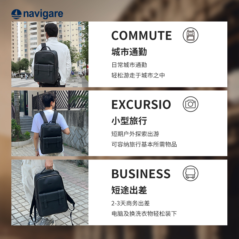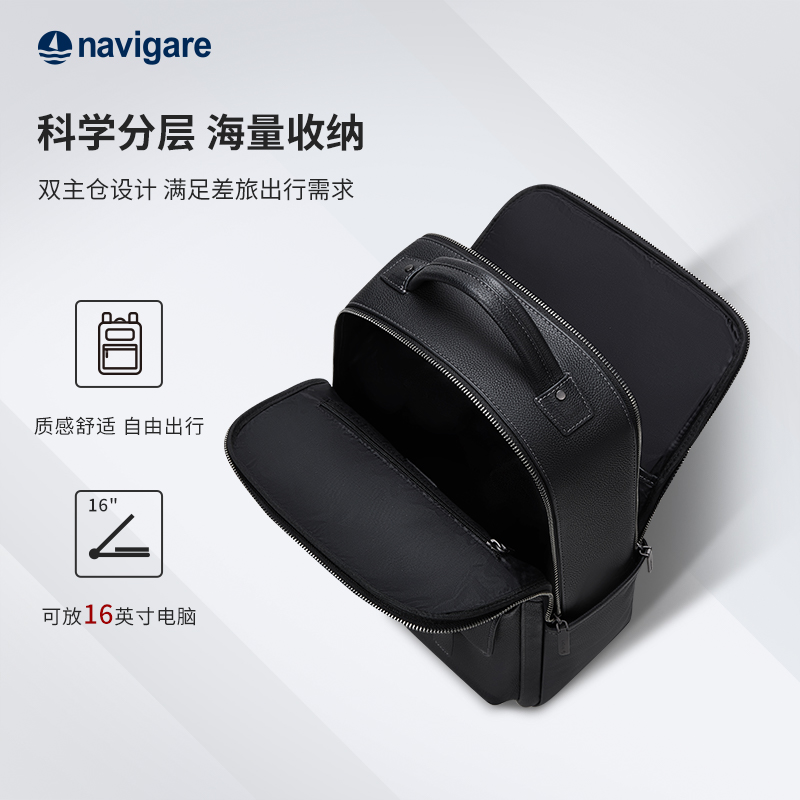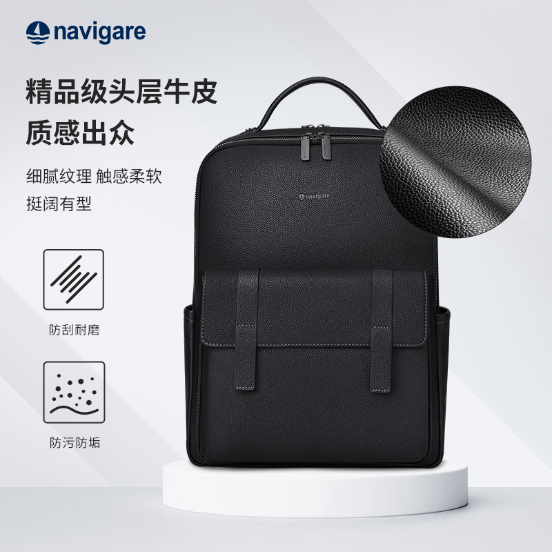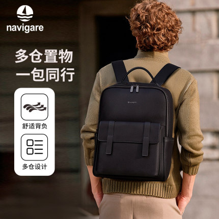 navigare纳维凯尔意大利小帆船双肩包男款商务电脑包书包真皮背包
