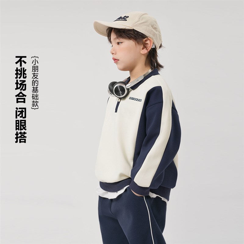 男童拼色绣花卫衣童装春装2025春秋新款男孩儿童宝宝百搭洋气上衣