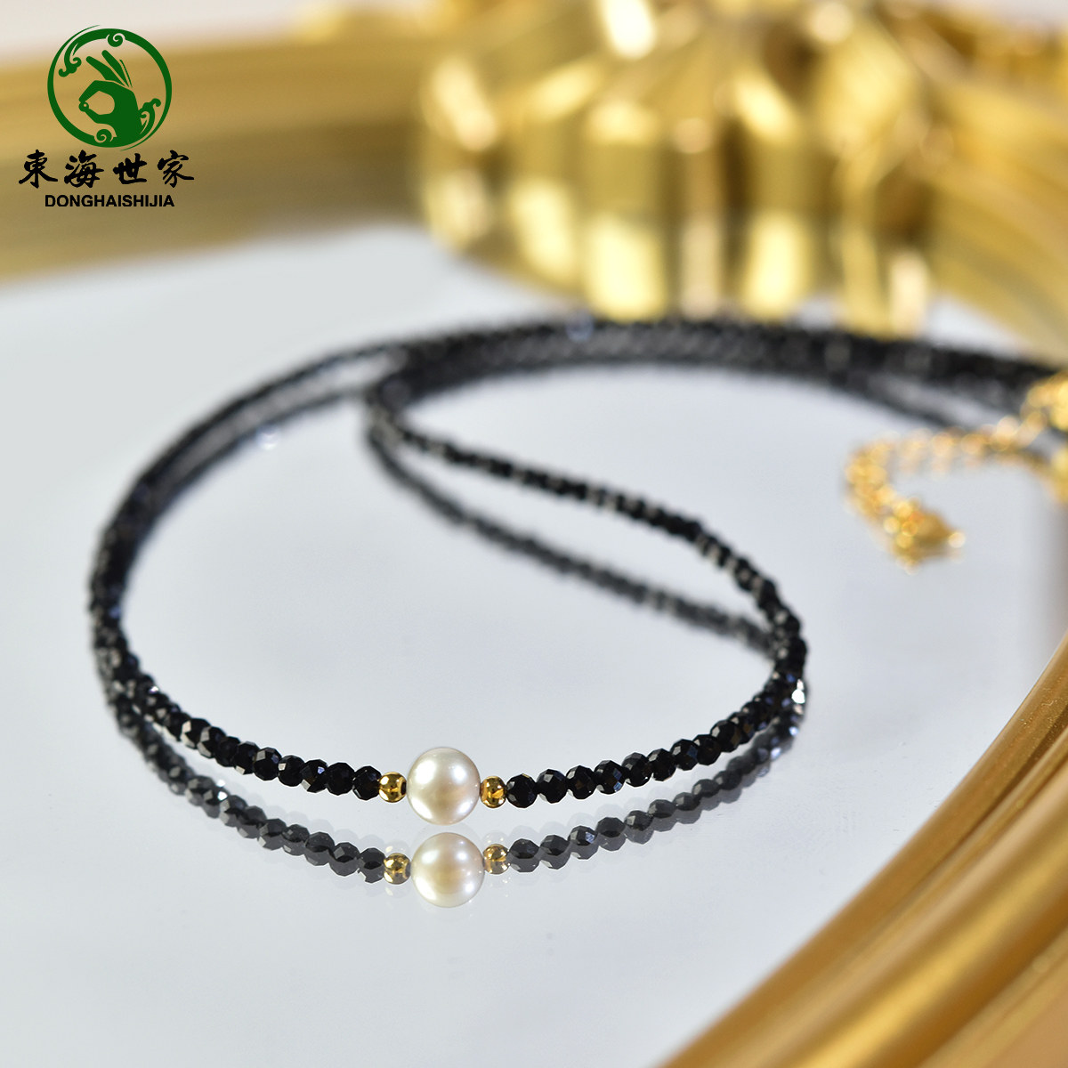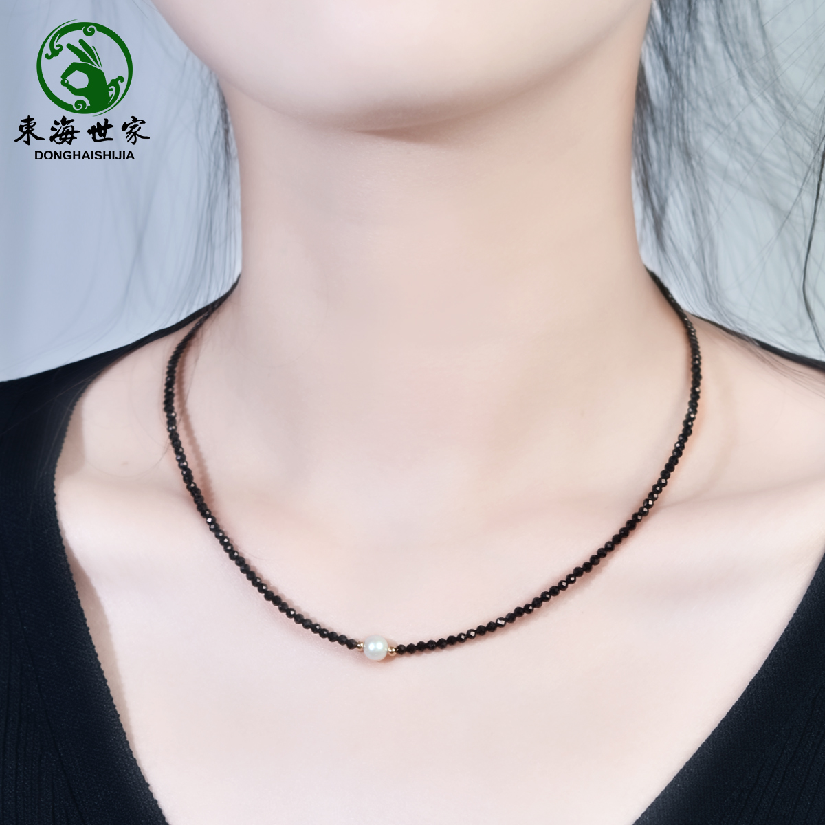 东海世家黑尖晶珍珠项链女轻奢
