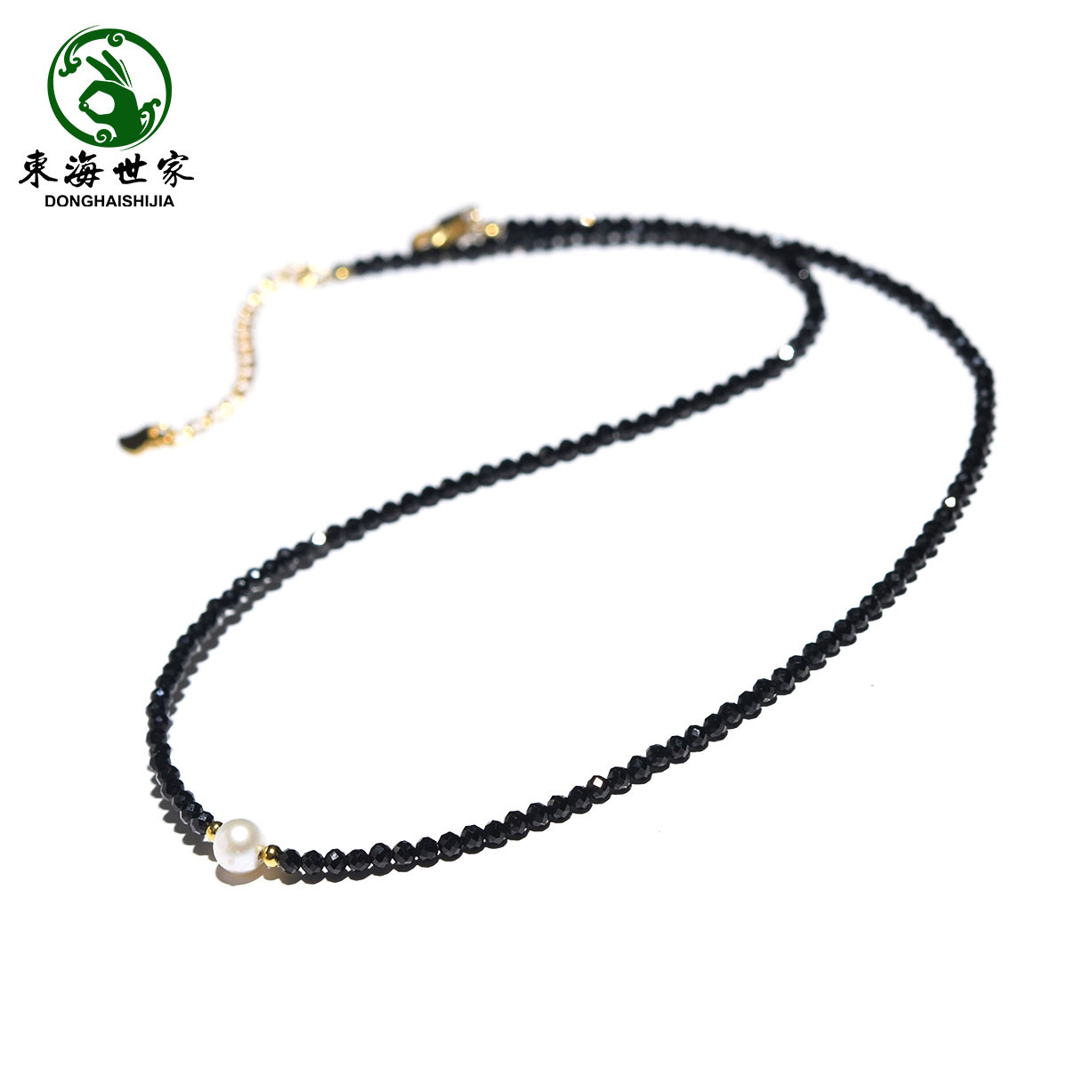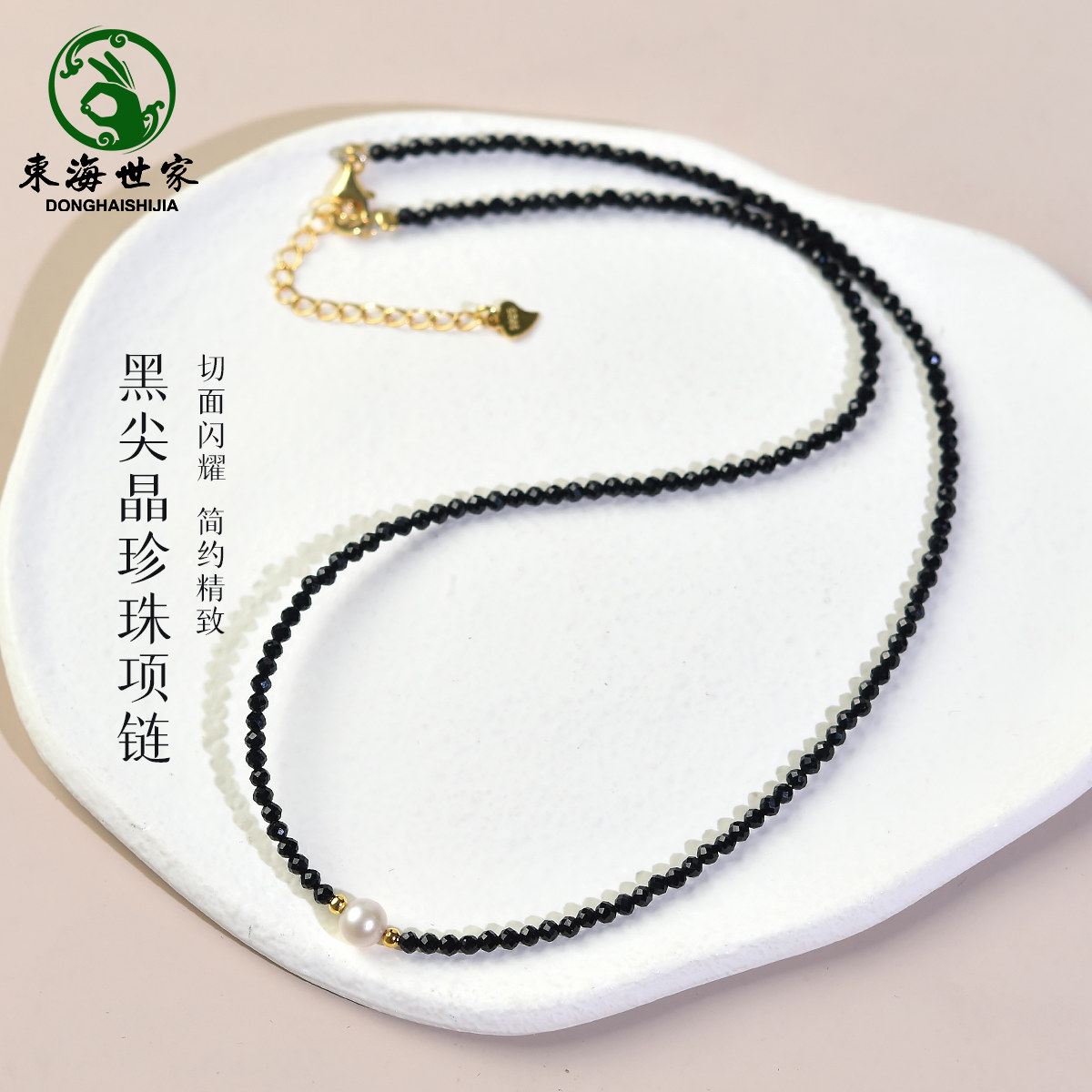 黑尖晶项链女尖晶石锁骨链黑色水晶颈链2025年新款爆款小珍珠项链