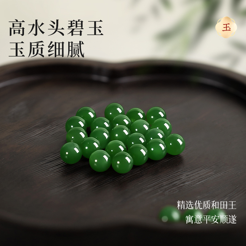 天然和田碧玉散珠女款官方旗舰店正品玉石菠菜绿散珠串珠diy手链