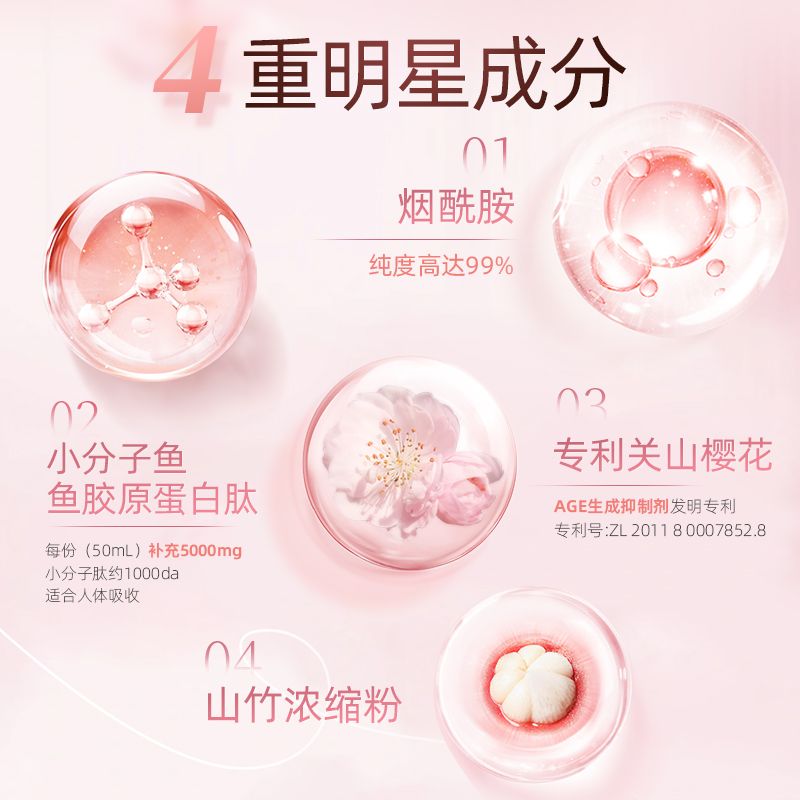 康恩贝烟酰胺胶原蛋白肽液态饮小分子肽口服液黄气官方正品巴西莓