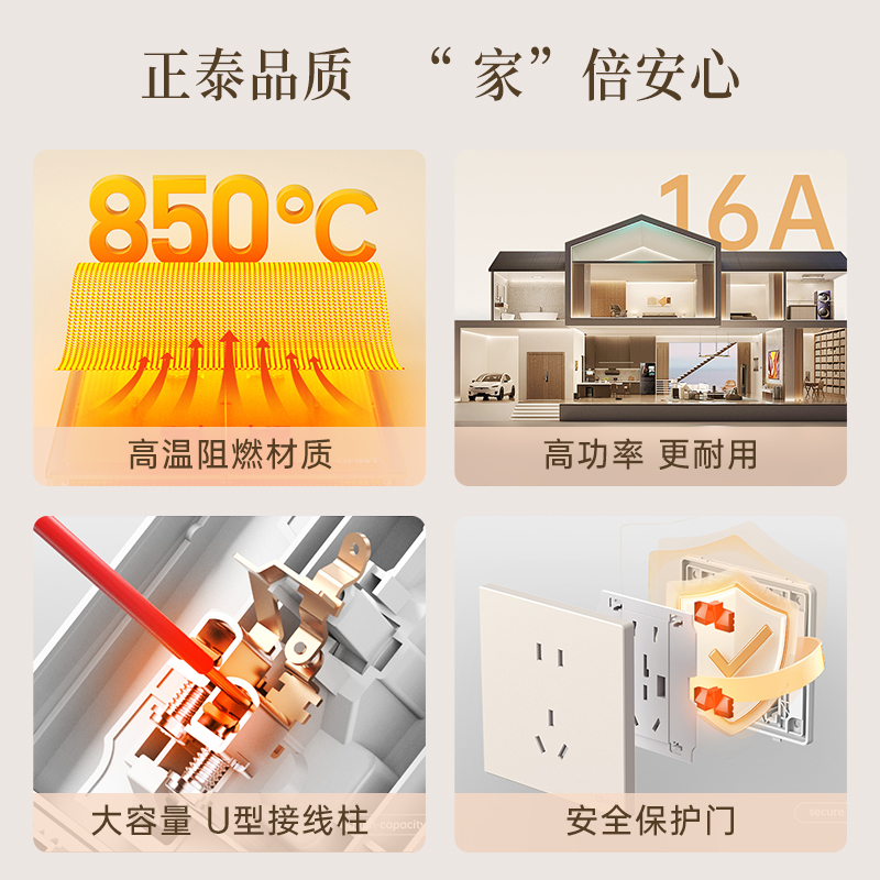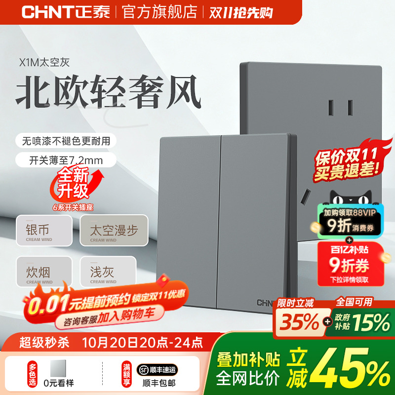 正泰官方旗舰店X1M开关插座哑光86型家用暗装16a奶油风面板太空灰