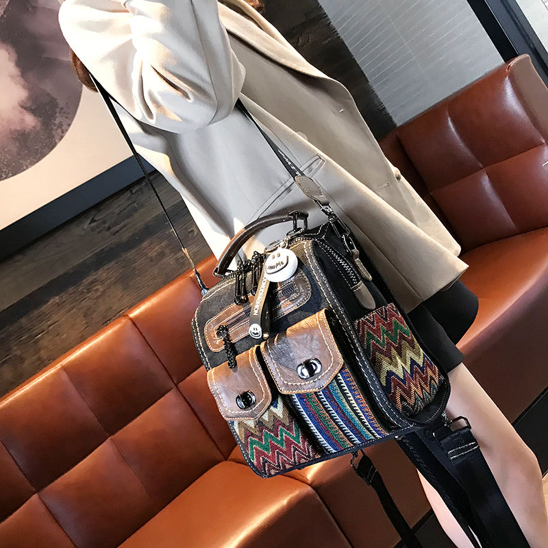牛仔布双肩包女025新款民族风刺绣流行背包防水个性时尚斜挎包潮
