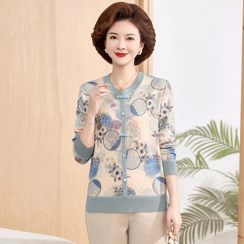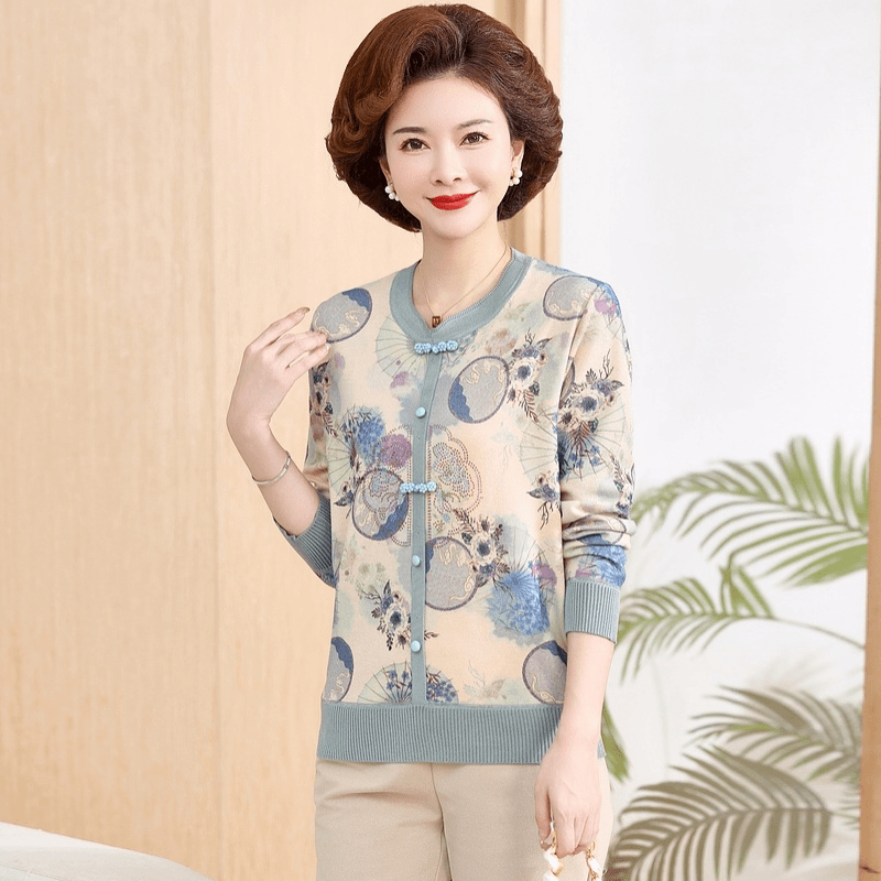新中式妈妈秋装2024女装针织新款上衣洋气毛衣中老年时尚春秋小衫