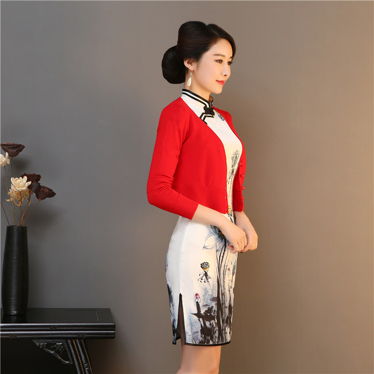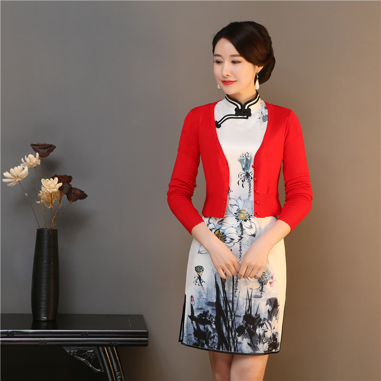 针织开衫外套女小披肩短款春秋薄款复古长袖百搭修身搭配旗袍外搭