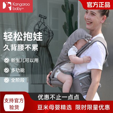 袋鼠仔仔 可调节婴儿腰凳背带 四季透气多功能前抱式坐凳带娃神器