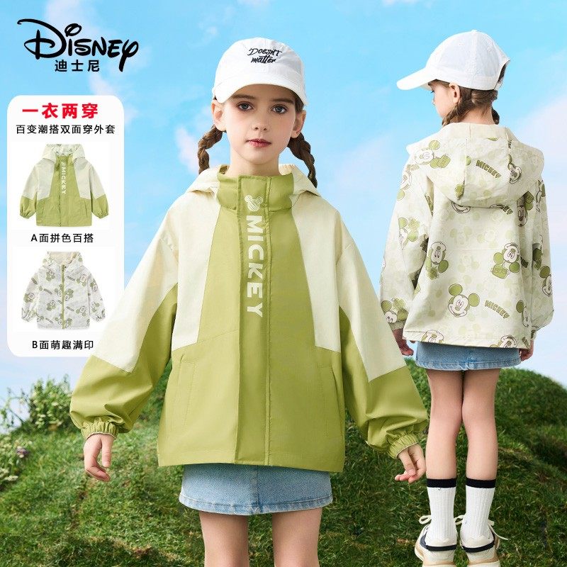迪士尼儿童秋冬外套男童女童冲锋衣双面穿中小童宝宝风衣2025新款