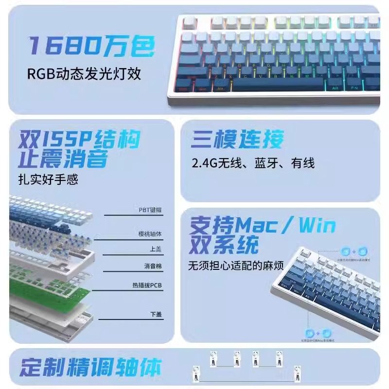 前行者樱桃cherry轴机械键盘无线蓝牙三模侧刻游戏电竞青红茶黑轴
