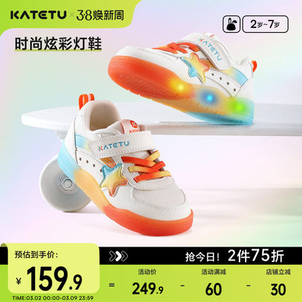 卡特兔童鞋女童板鞋2026春季新品灯鞋闪灯鞋子防滑透气儿童滑板鞋