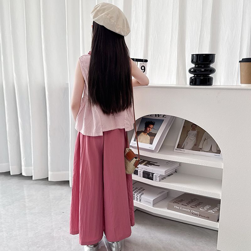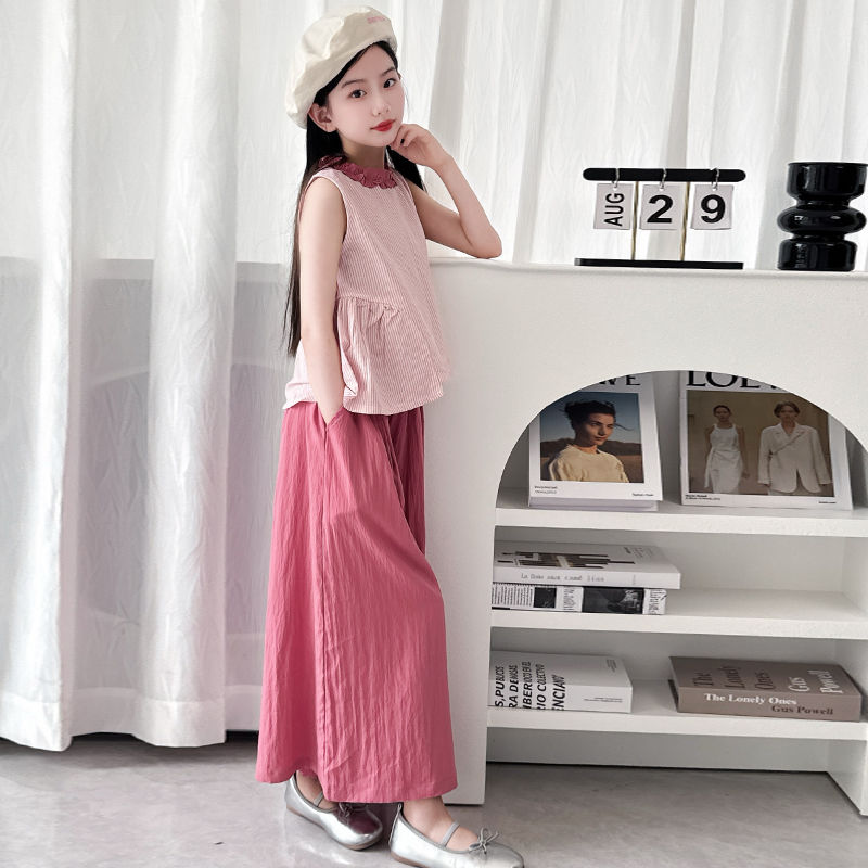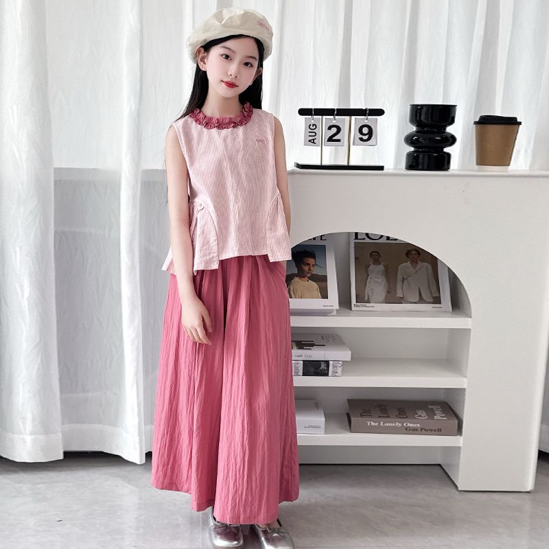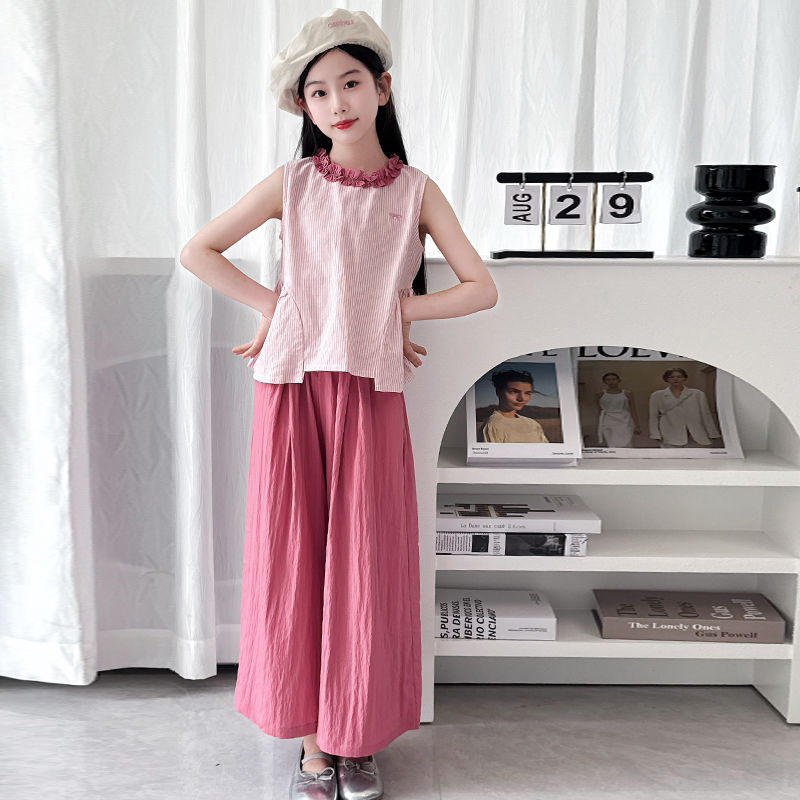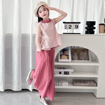 新款小女孩休闲学院风女童夏装两件套洋气韩版无袖拼色运动套装潮