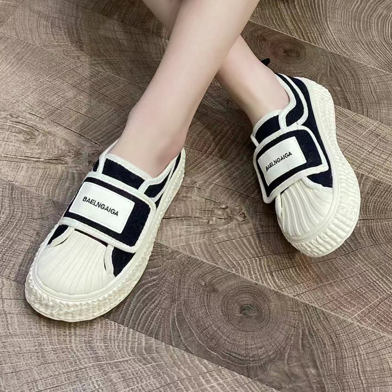 渔夫鞋女夏季魔术贴厚底饼干贝壳头蕾丝薄款透气网面网鞋休闲板鞋