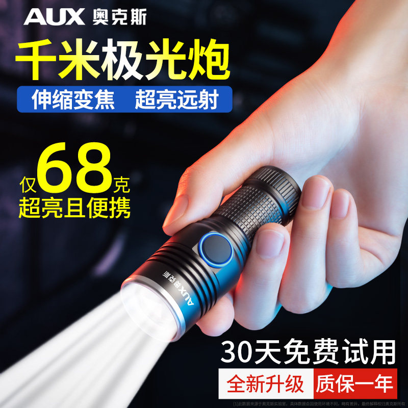 奥克斯迷你手电筒小型便携2026新款强光充电超亮耐用家用超长续航