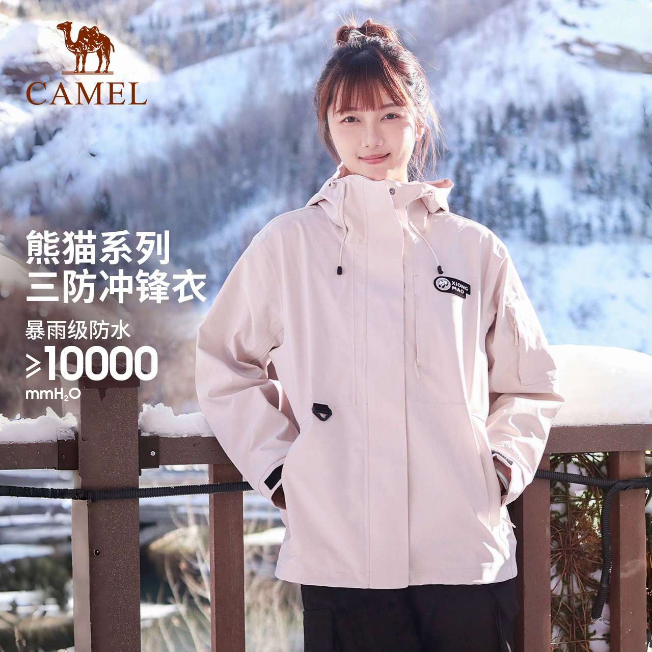 骆驼熊猫系列户外冲锋衣女三合一秋冬新款三防登山服加绒外套男