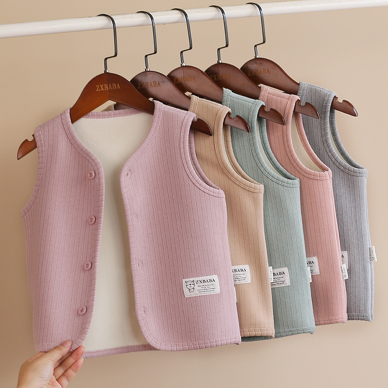 儿童加绒加厚保暖德绒马甲秋冬宝宝无袖秋衣打底衫男女童坎肩背心