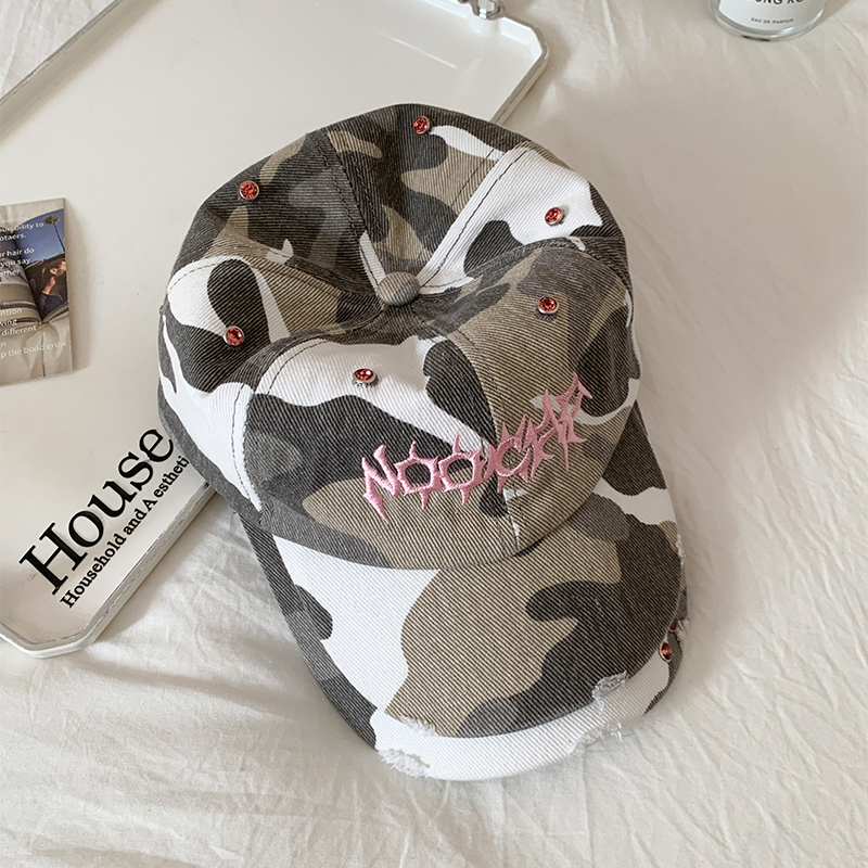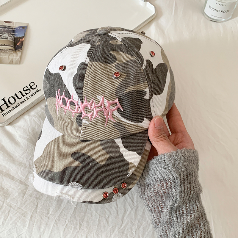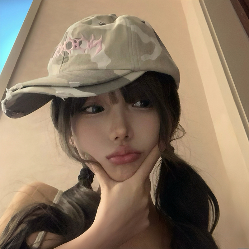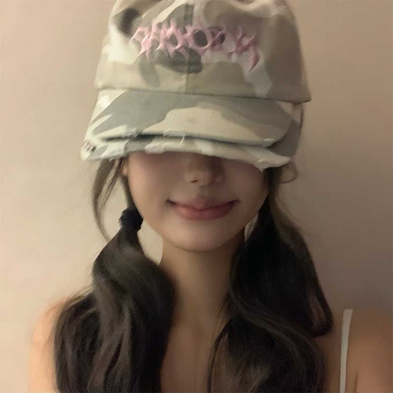 字母刺绣迷彩棒球帽女y2k双帽檐