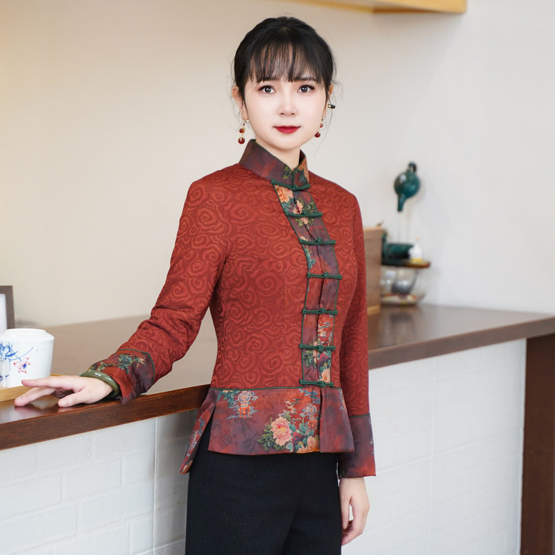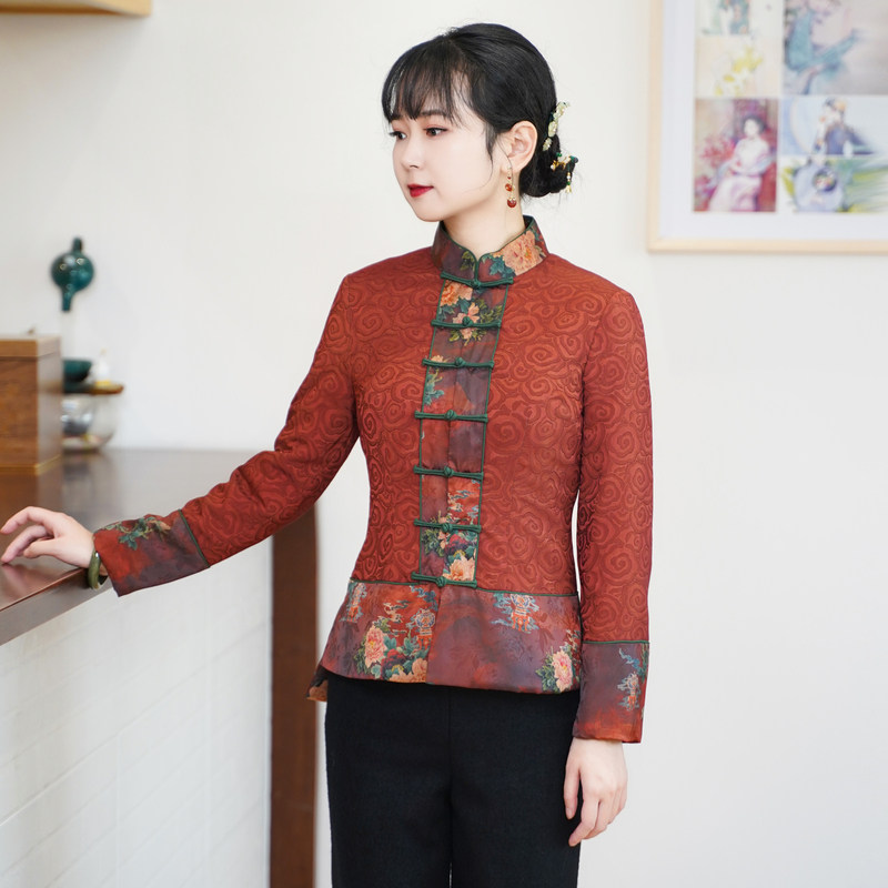 如意风冬季新款加厚长袖旗袍上衣女唐装小棉袄改良女装外套23R636