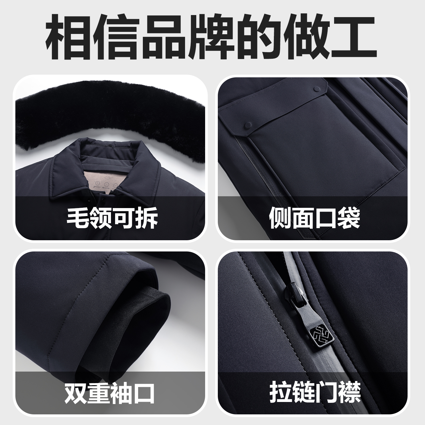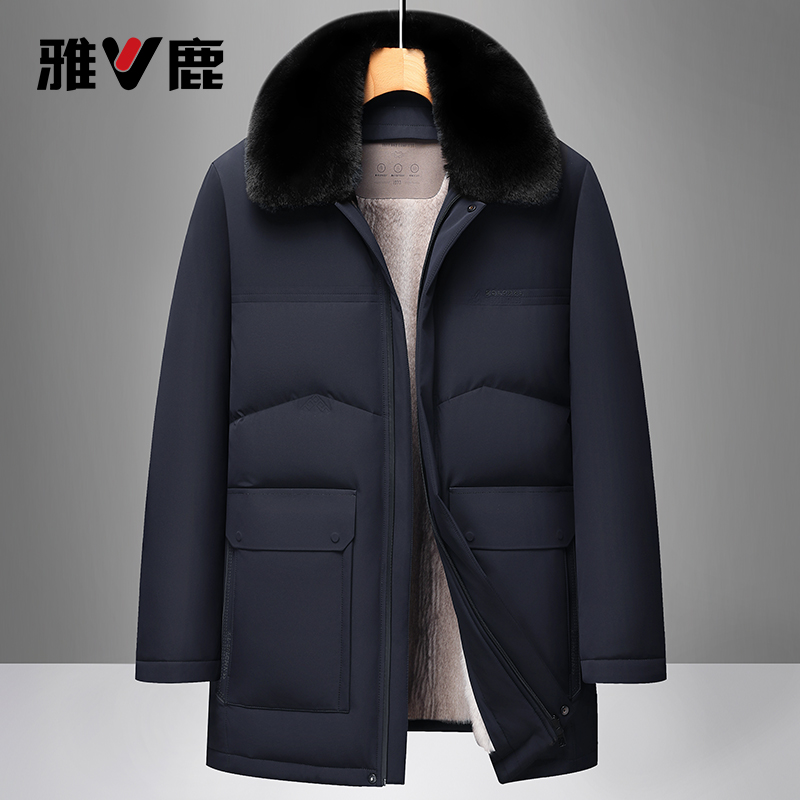 雅鹿2025年冬季新款加绒加厚棉服爸爸装中老年可拆毛领款保暖棉衣