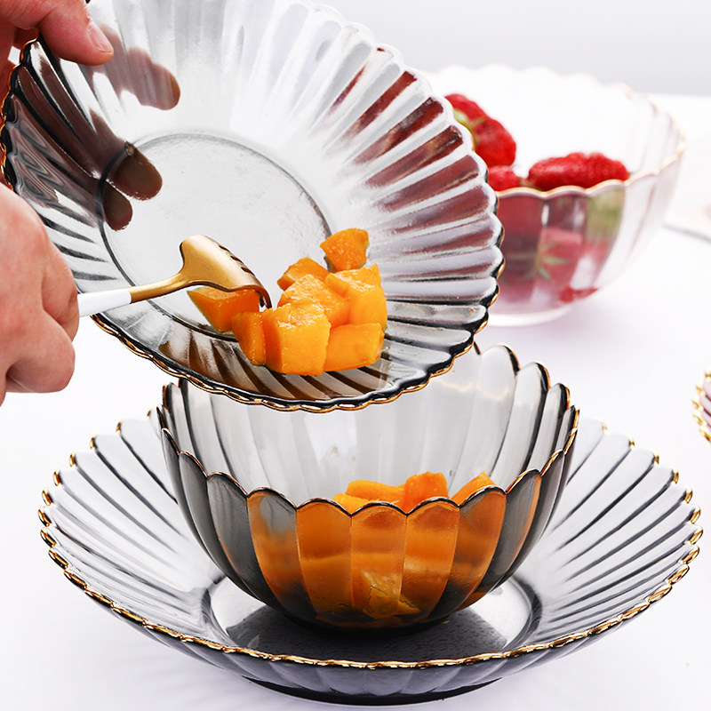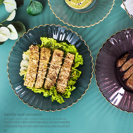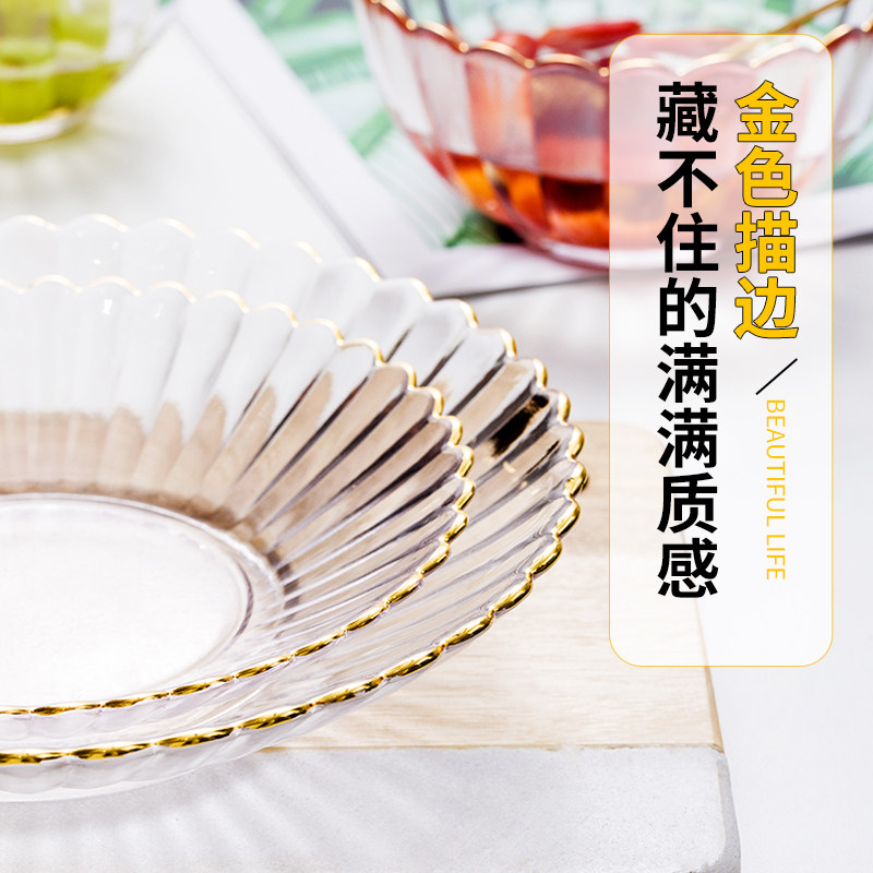 北欧ins风玻璃点心水果盘家用网红创意菜盘子日式甜品金边碗盘碟