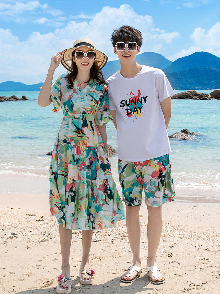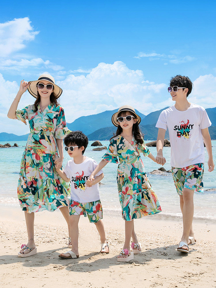 海边渡假沙滩亲子装夏装2025款母子母女连衣裙套装情侣装一家四口