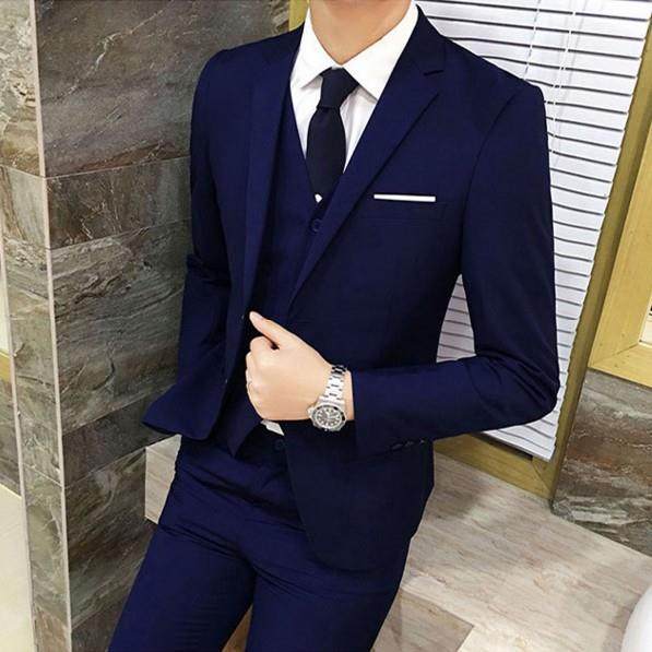 秋冬三件套新郎西服四季款韩版纯色修身商务套装男小西装礼服新款