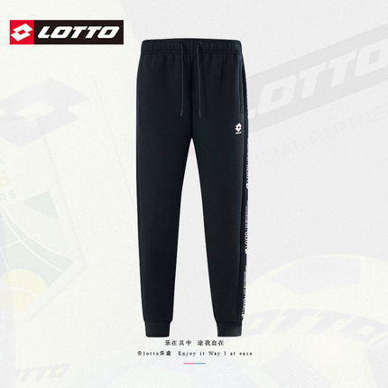 LOTTO乐途针织裤子女字母串标春季运动潮款黑粉拼色ins休闲直筒裤