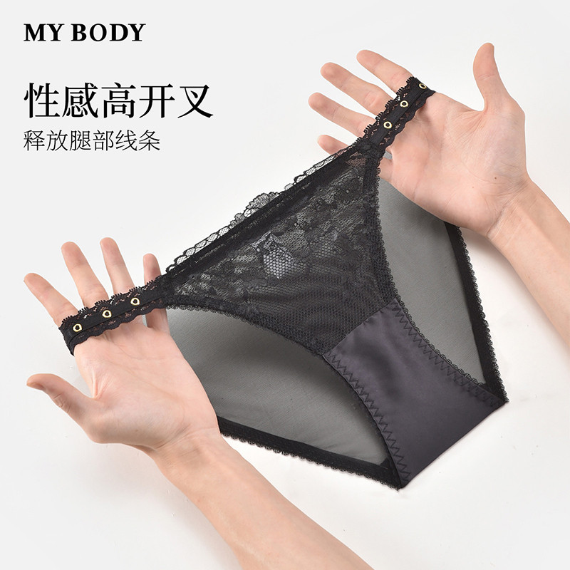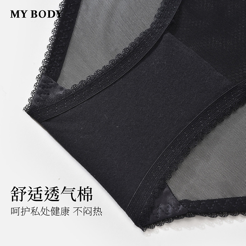 3件159|商场同款MYBODY新款内裤女轻透蕾丝网纱高开衩低腰三角裤