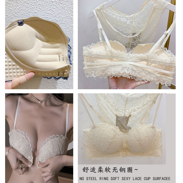 前扣式内衣女薄款夏季小胸聚拢显大无肩带蕾丝美背文胸罩套装性惑