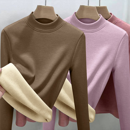 妈妈装半高领加厚加绒打底衫冬季女士羊羔绒内搭修身保暖中年秋衣
