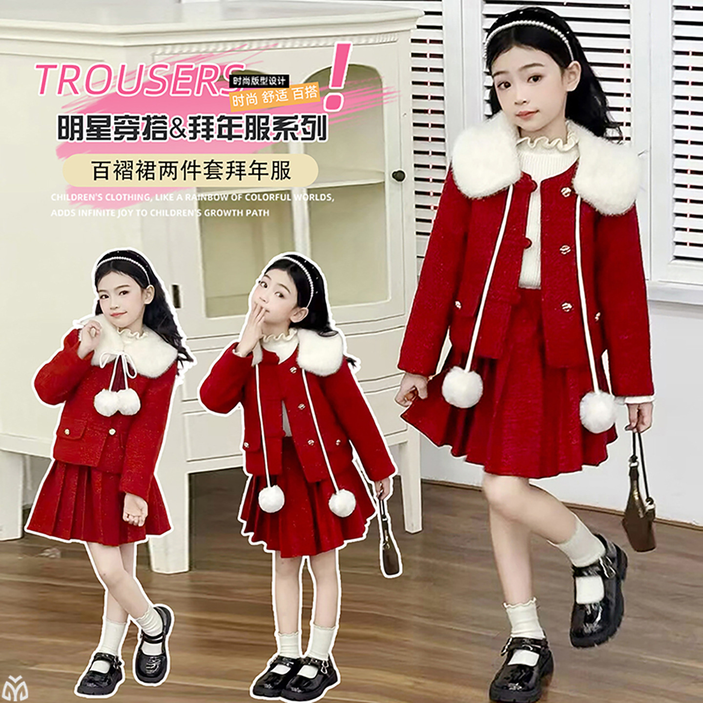 女童秋冬裙子2025新款富家千金儿童套装时髦女孩长袖两件套连衣裙