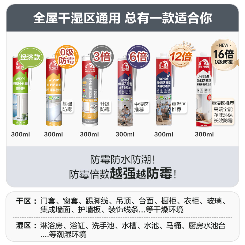 雨虹防霉防水厨卫玻璃胶透明结构密封胶门窗专用美容胶马桶封边胶