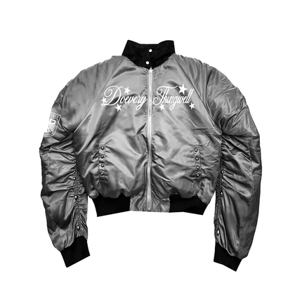 DETW 25AW*金属烫银褶皱Bomber短款立领铆钉刺绣羽绒棉服小众外套