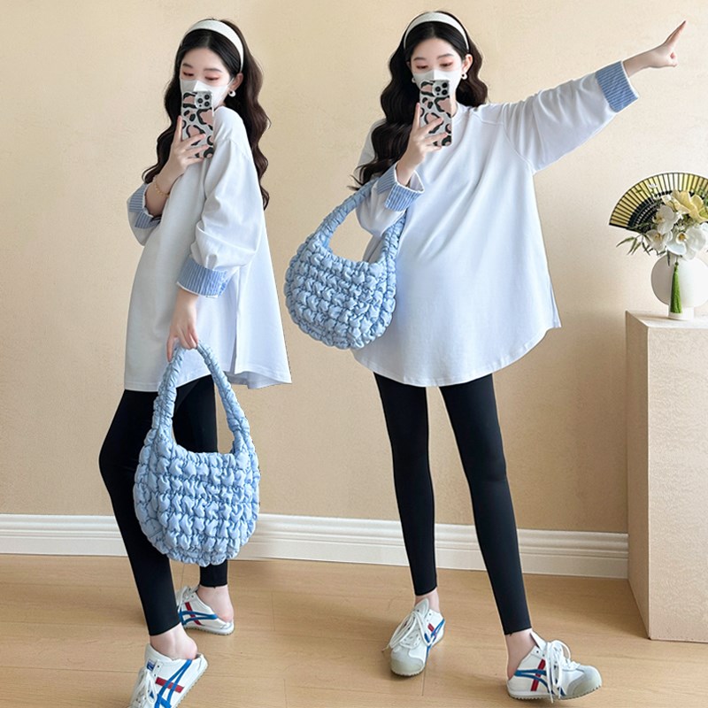 大码孕妇装2025春装套装宽松时尚中长款长袖T恤上衣女新X中式200