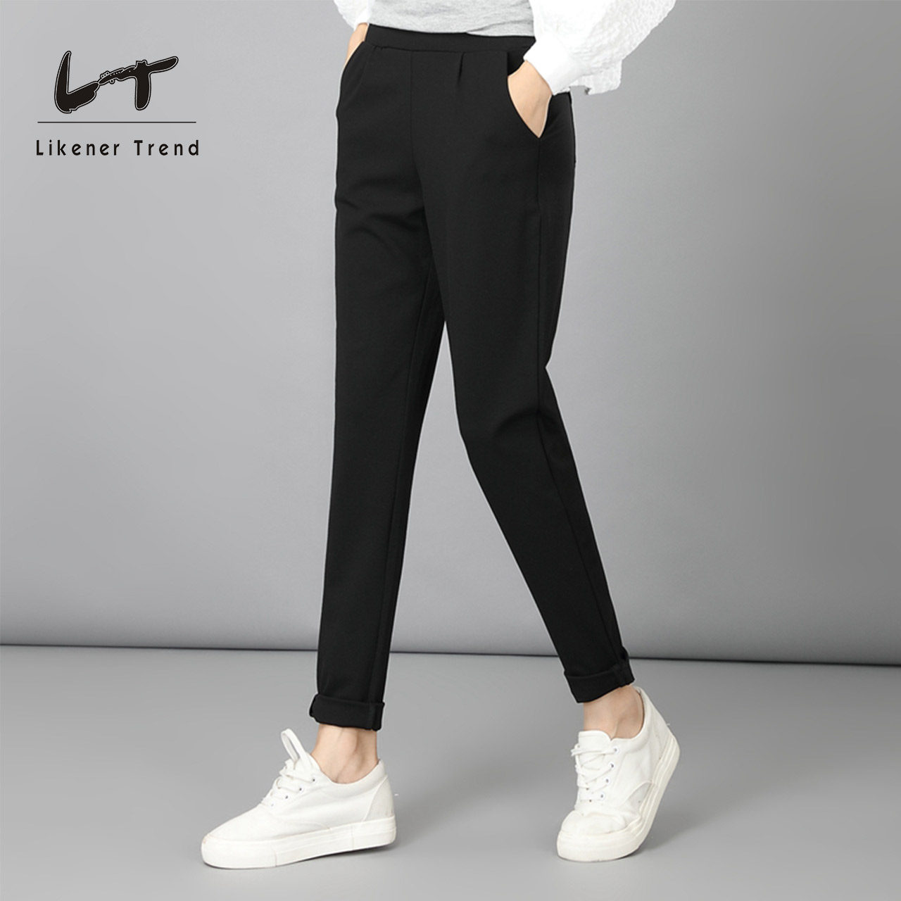 LT加绒加厚显瘦大码裤子女松紧腰胖mm九分长裤哈伦裤小脚裤女薄款