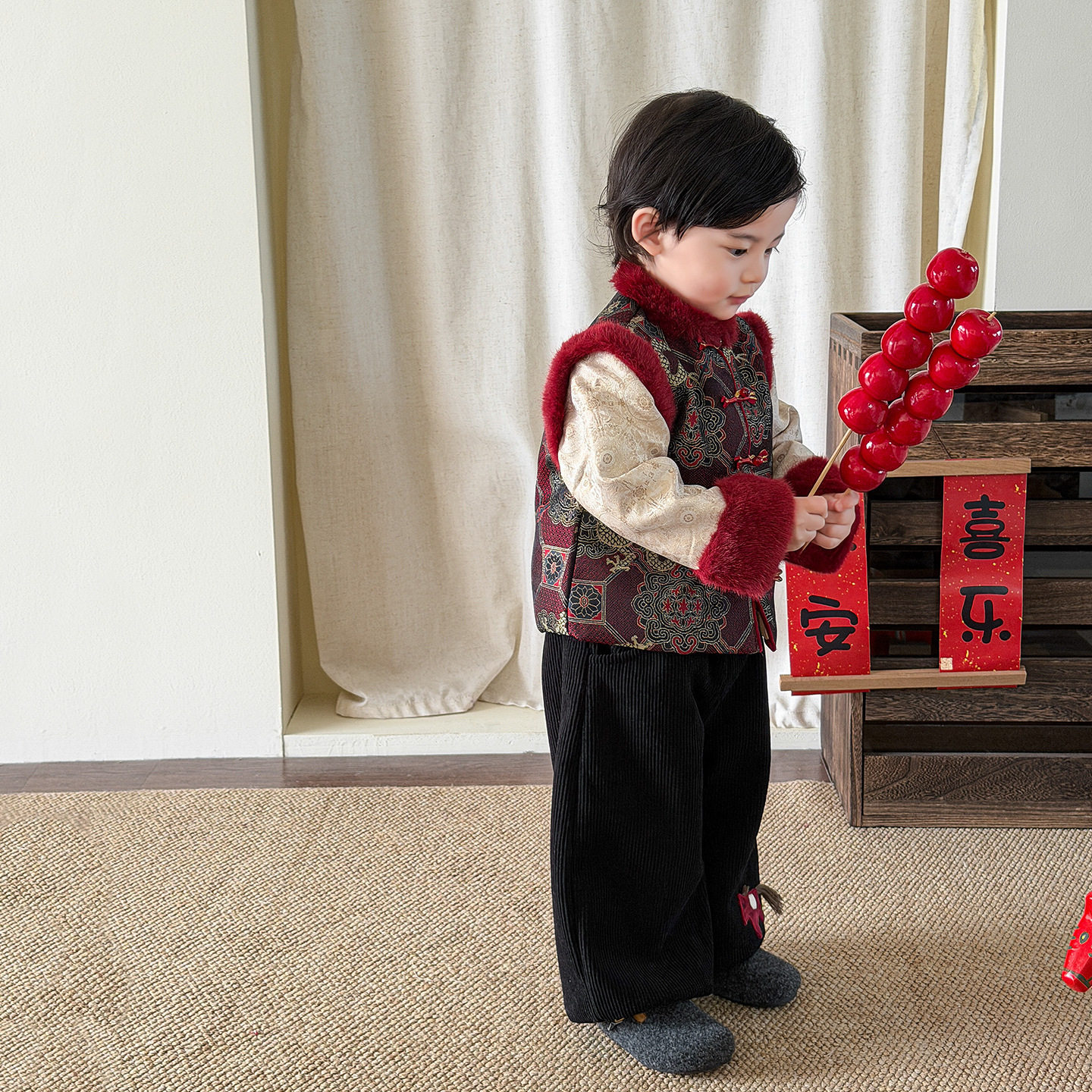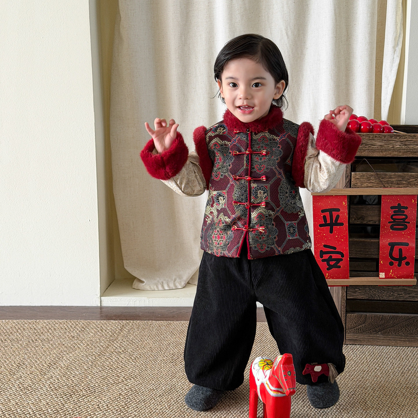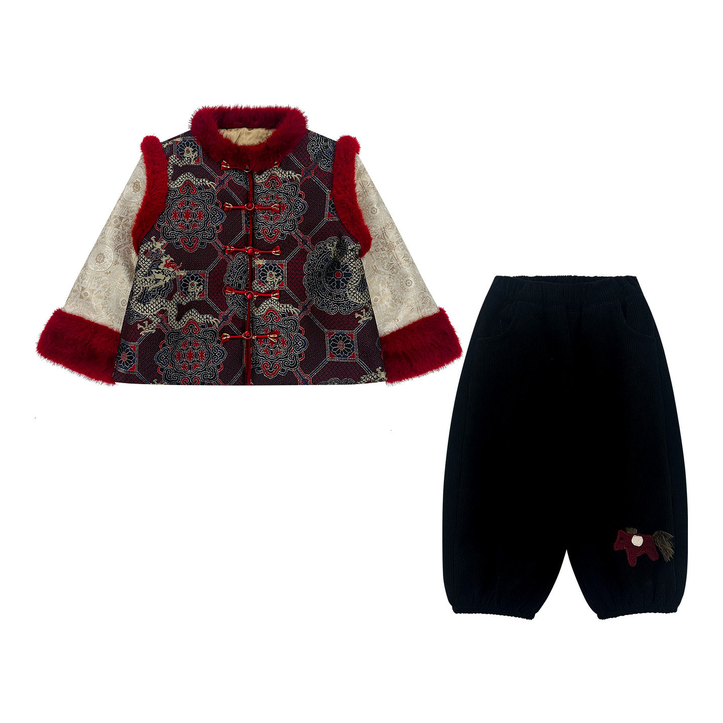 男宝宝冬装套装喜庆新年服2026冬季新款中国风加厚棉衣冬款拜年服