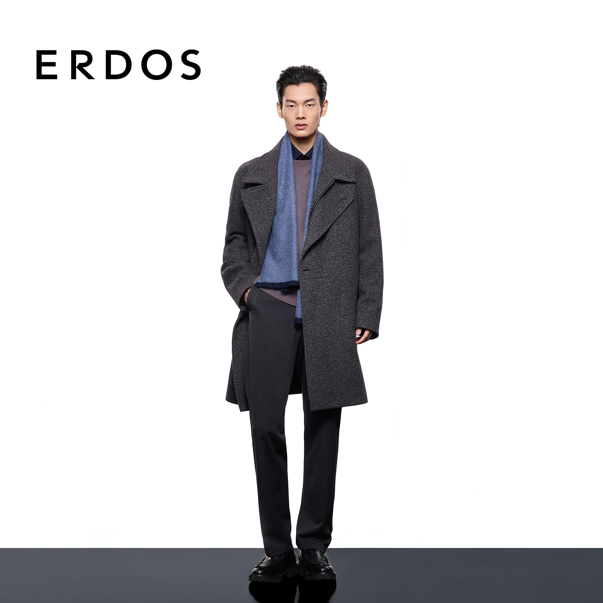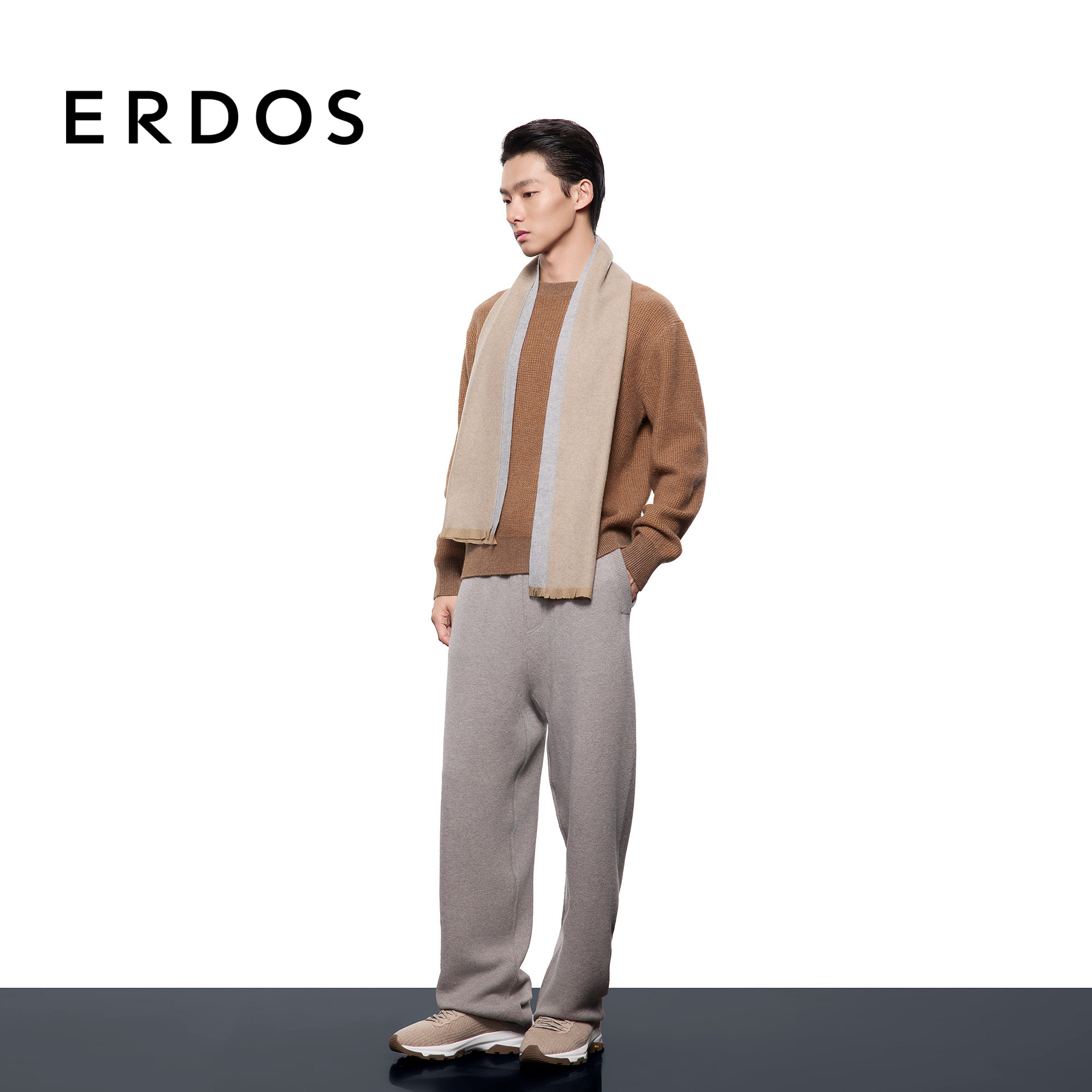 ERDOS 男装纯羊绒围脖25年秋冬新品轻起毛双面男士保暖围巾