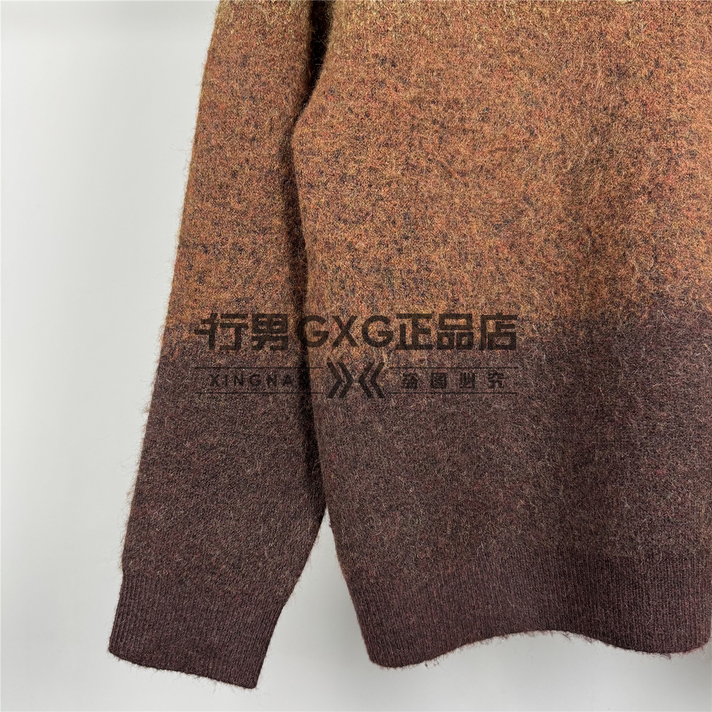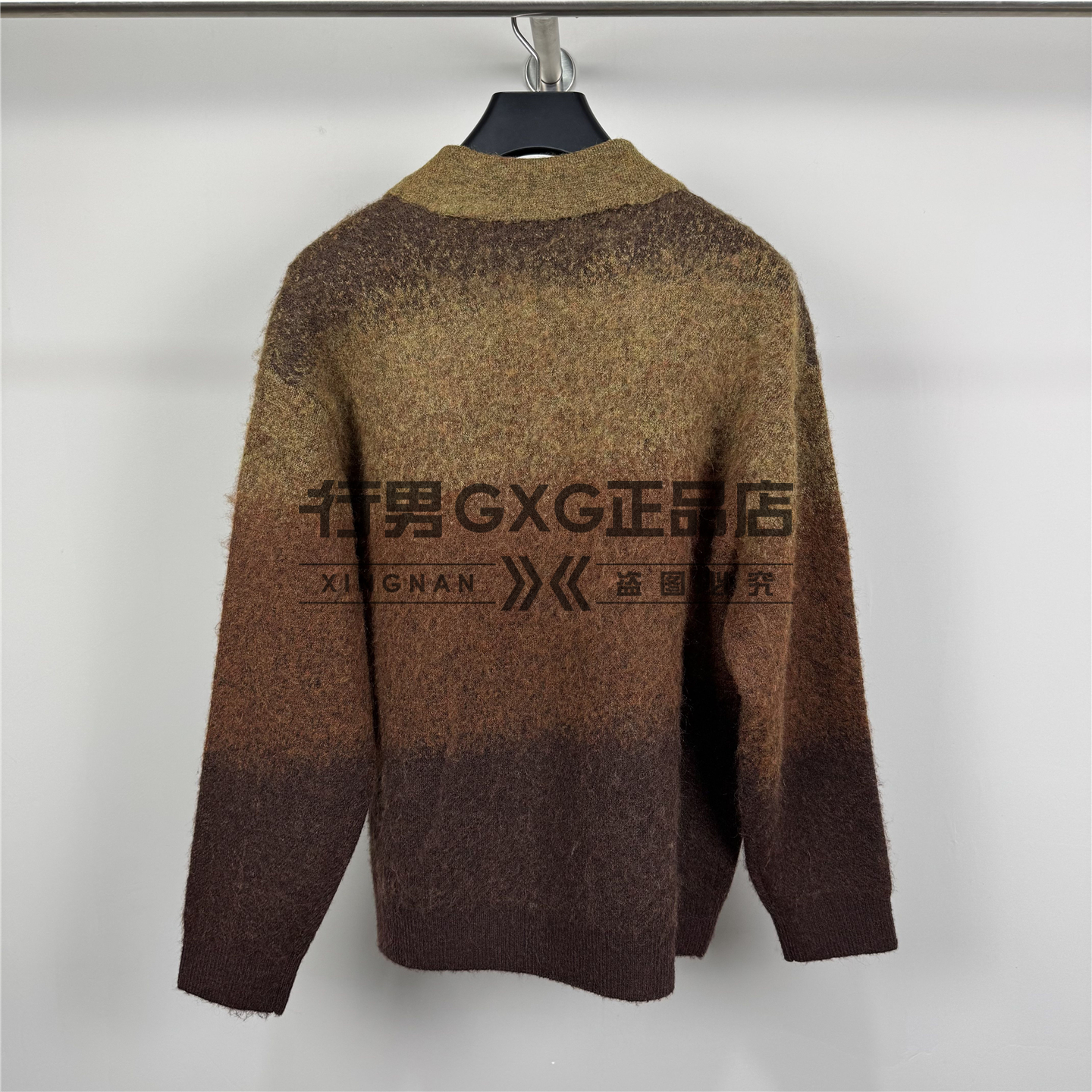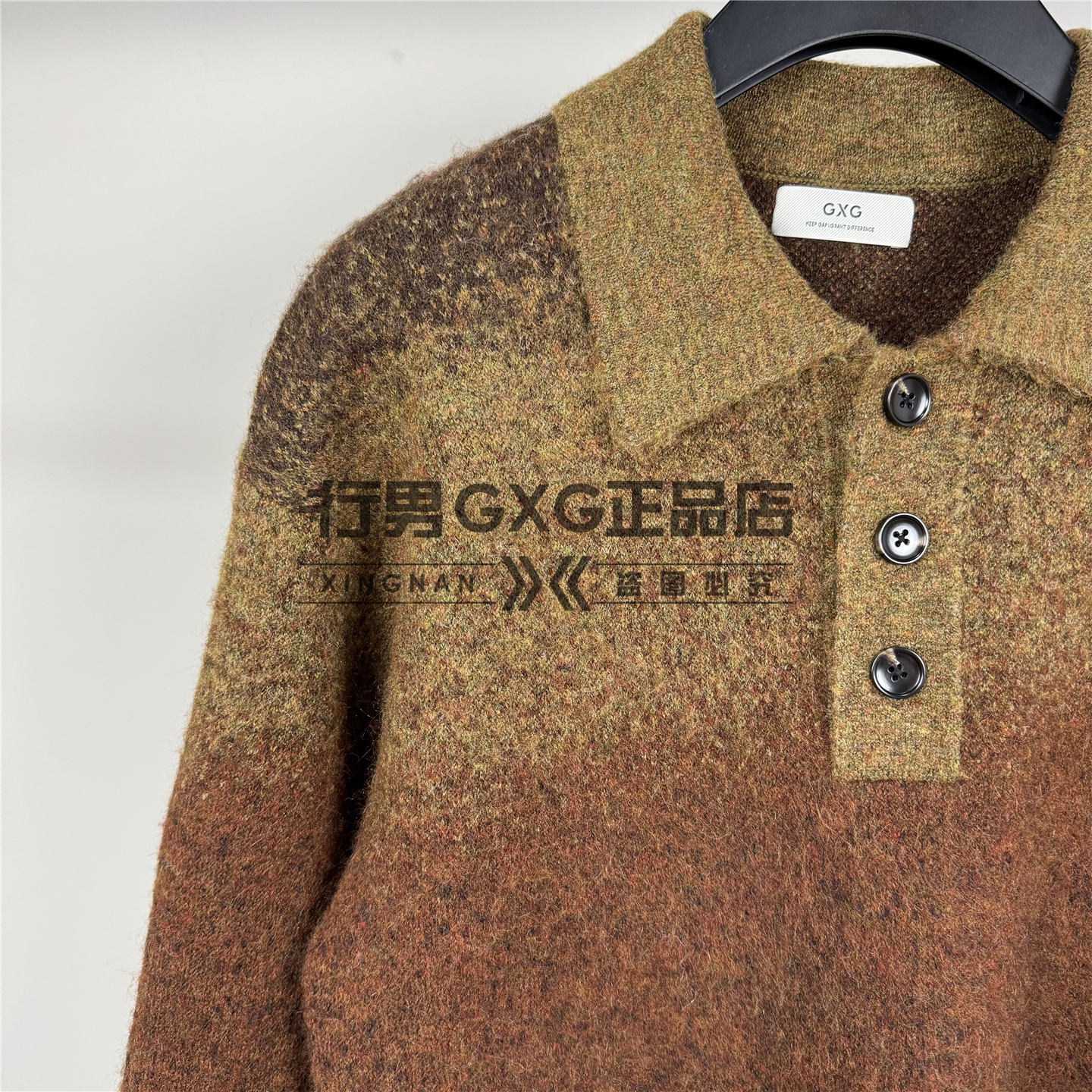 GXG男装2025冬季新款咖色翻领羊毛衣男士针织衫外套G25X204042004