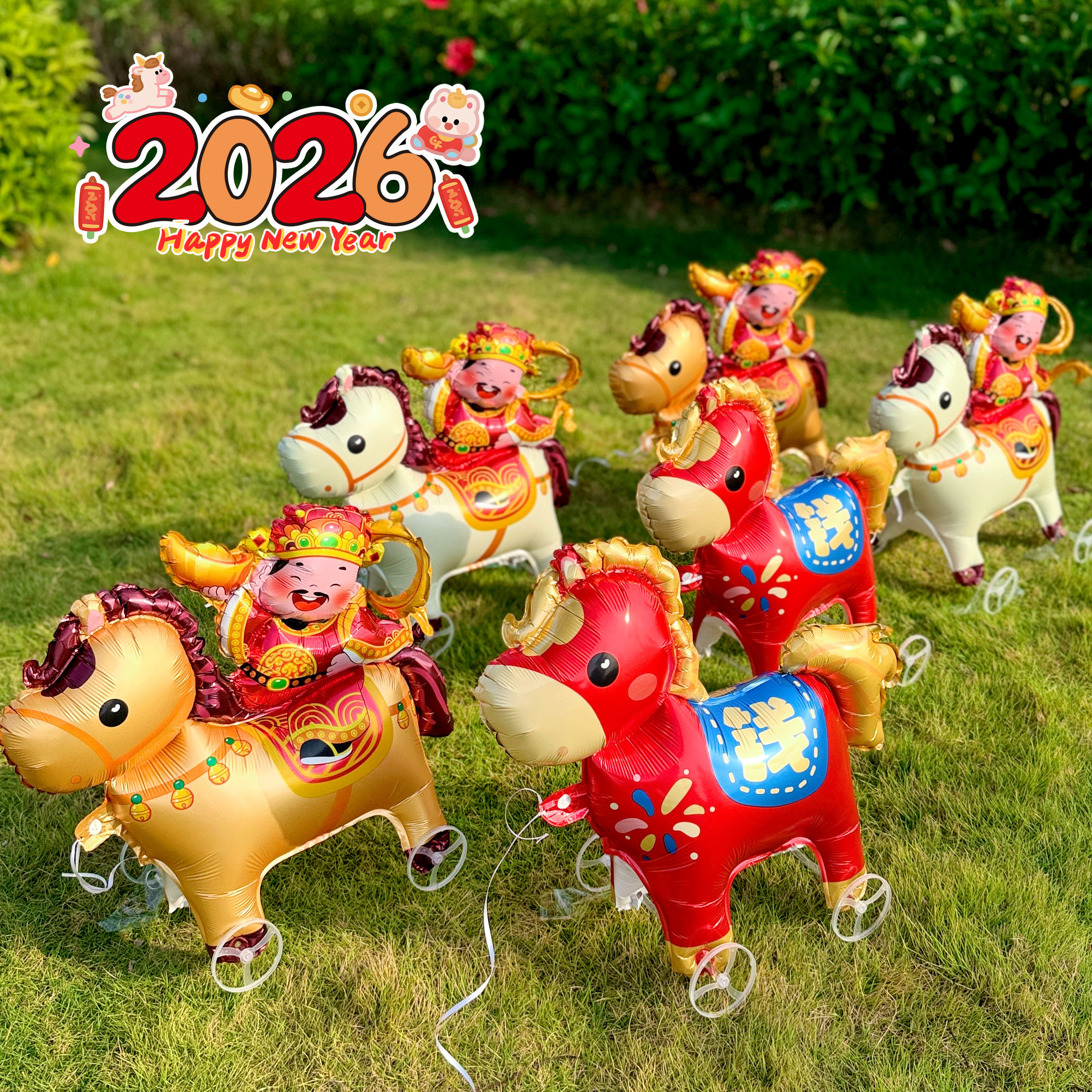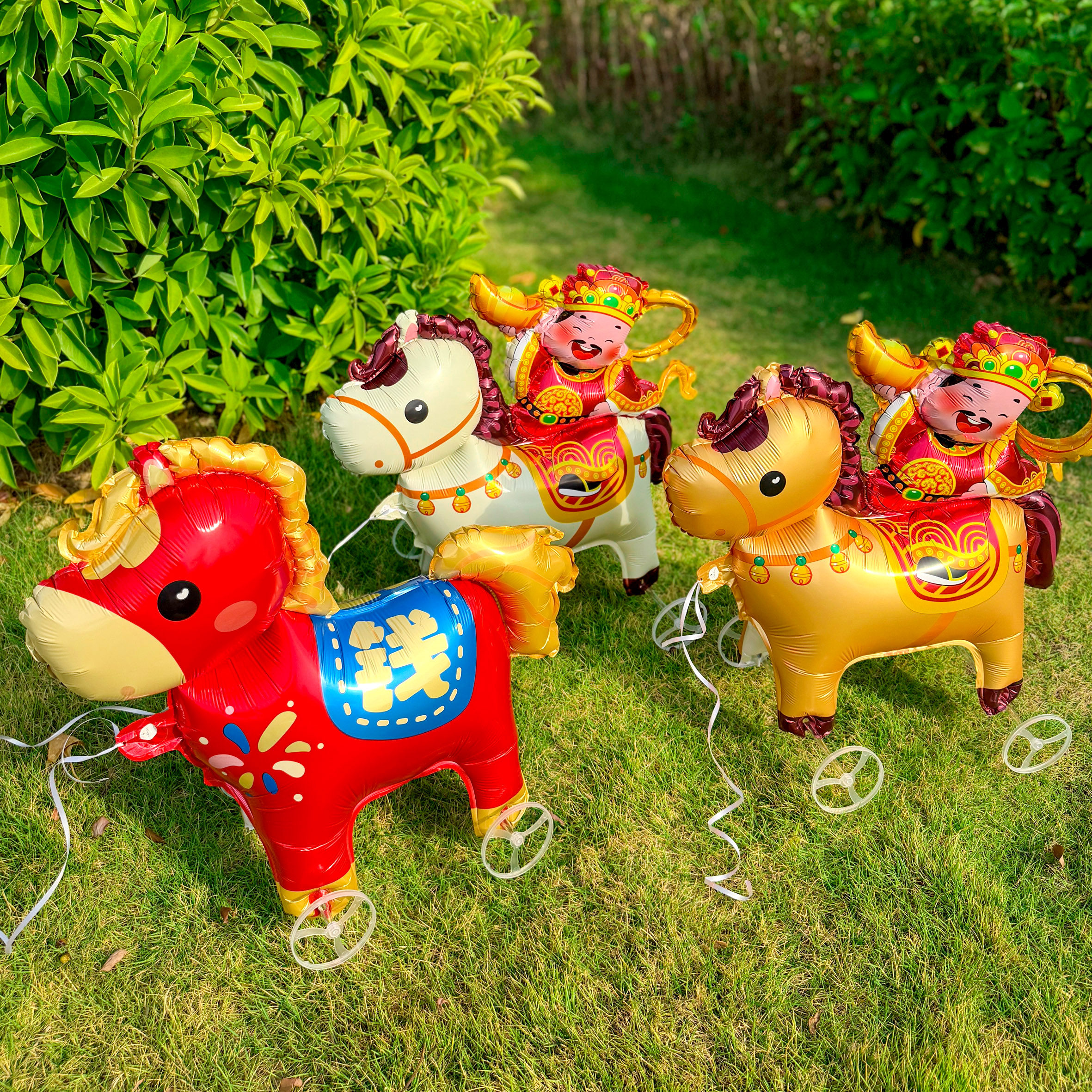 新款新年马上有钱马年造型带轮走路气球幼儿园商场活动装饰摆摊