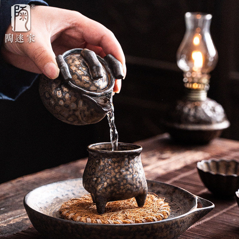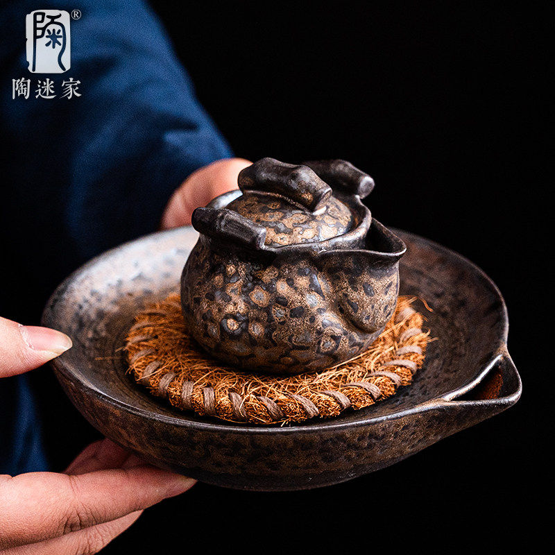 鎏金铁釉竹节手抓壶复古窑变宝瓶壶小容量茶壶陶瓷功夫茶具