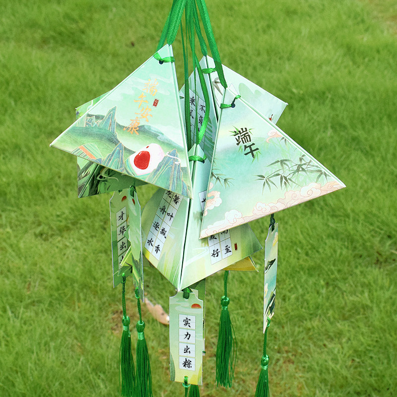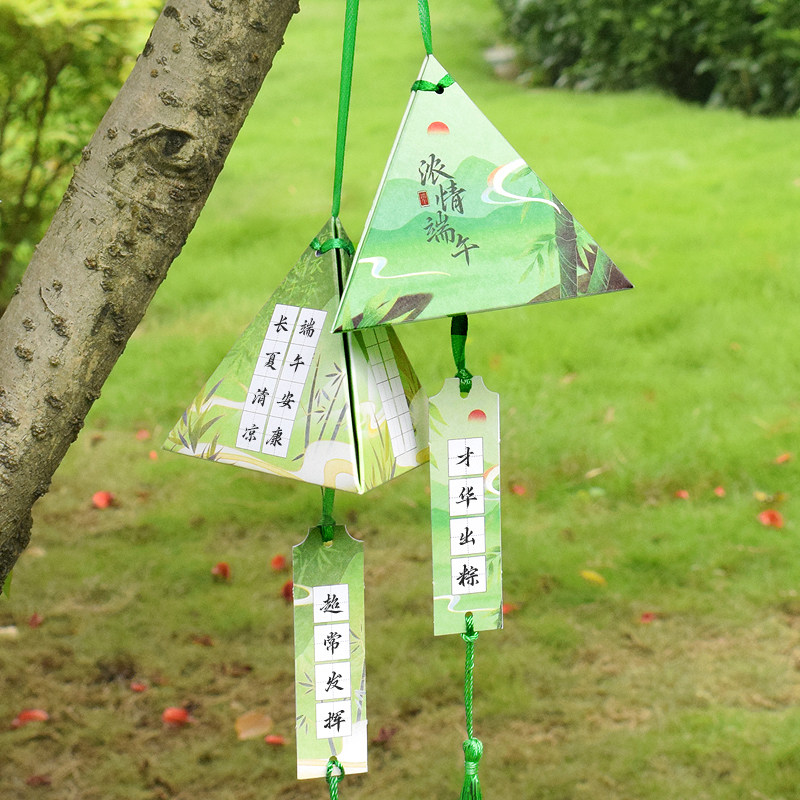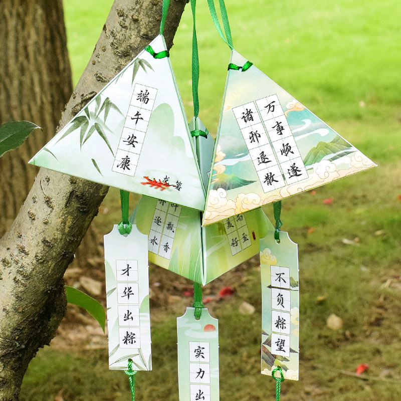 知砚仲夏端阳硬笔书法纸粽子造型3D立体挂件香囊端午节主题田字格手写许愿挂卡学校社区活动布置装饰心愿卡片