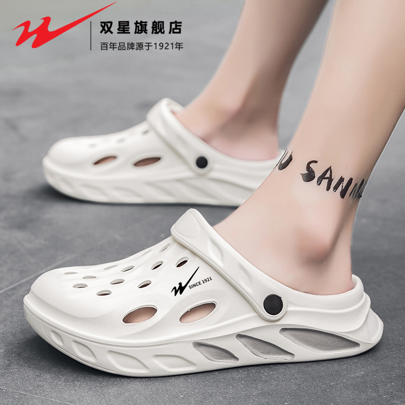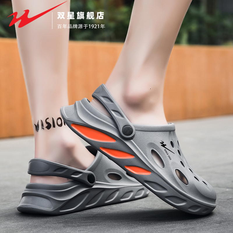 双星男士洞洞鞋2025新款秋季外穿包头拖鞋户外运动踩屎感沙滩凉鞋