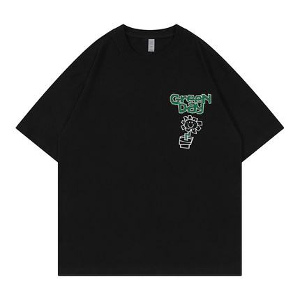 Green Day绿日乐队美式街头简约休闲落肩宽松纯棉圆领摇滚短袖T恤
