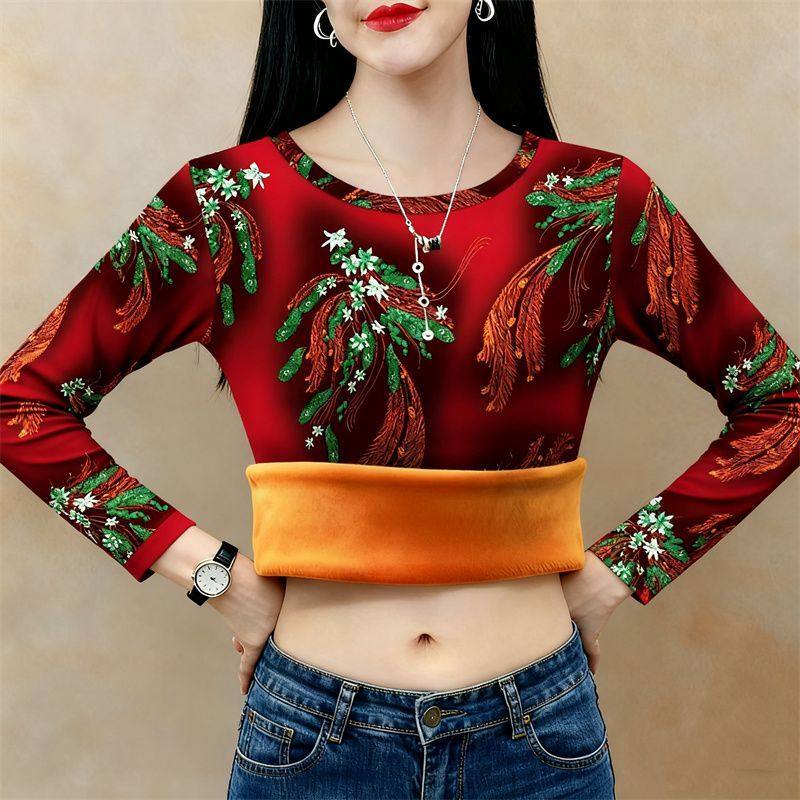 内搭大码长袖卫衣女新款秋冬简约显瘦宽松打底圆领印花大码上衣女